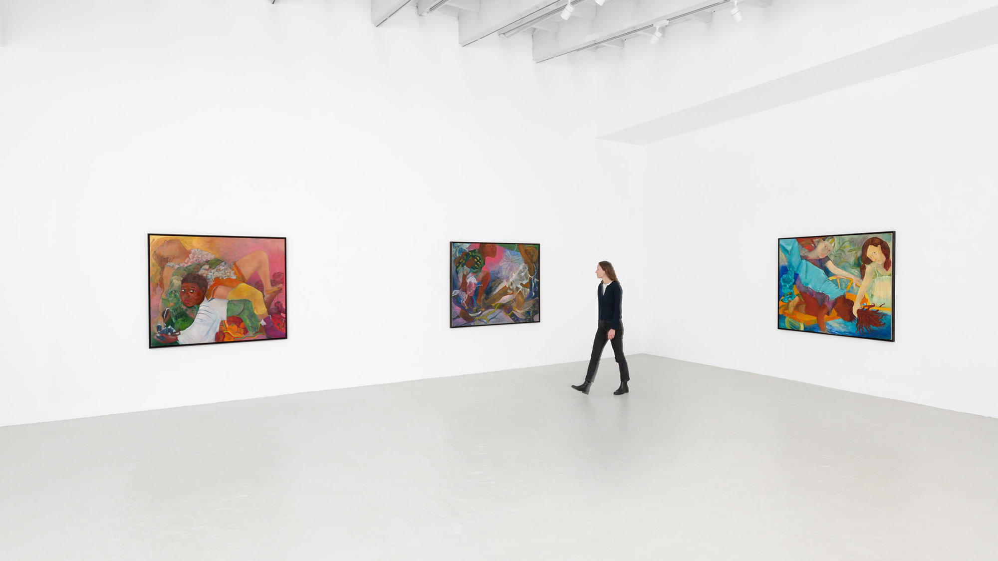 Partager Partager Pour sa première exposition personnelle en Europe chez Semiose, The Borders of Innocence, Philemona Williamson se concentre sur une période clé de la vie, remplie d’attentes et d’ambiguïtés : l’adolescence. La narration met en scène des personnages inventés qui font face à leurs émotions et à la perte de contrôle dans une nature luxuriante peinte avec des couleurs vives. Sa jeunesse dans un contexte multiculturel l’a beaucoup inspirée forger sa résilience et transcender les stéréotypes raciaux. L’artiste nous révèle les moments décisifs de sa vocation de peintre, l’influence de la poésie et du réalisme magique. Philemona WilliamsonA Pause Requested, 2021, Photo : A. MoleCourtoisie Semiose, Paris Le titre de l’exposition « The Borders of Innocence » Je préfère les titres qui laissent au visiteur le soin de les interpréter plutôt que de les expliciter littéralement. L’idée qui sous-tend mon travail est que le tableau communique avec quelqu’un d’autre. Les personnages que je peins ne sont pas réels, ils sont mon invention, afin de défier le spectateur dans sa perception et son jugement. On peut observer beaucoup d’enfants et d’adolescents dans vos œuvres. Pourquoi la jeunesse vous intéresse-t-elle ? J’ai commencé à peindre lorsque j’étais adolescente. C’est un moment crucial de la vie, car votre corps change et vous vous sentez complètement hors de contrôle. C’est à cette époque que j’ai découvert la peinture. J’ai eu un professeur qui m’a enseigné la peinture comme une véritable discipline. Je me suis sentie tout à fait à l’aise avec la prise de décision de peindre et d’aller à l’atelier comme si c’était mon travail. C’est pour cela que c’est significatif pour moi. L’adolescence est aussi une période où l’on est le plus vulnérable. Sur le plan sexuel, vous devenez une femme, un homme, mais vous restez un enfant. On peut profiter de vous et pourtant vous avez tant d’espoir en l’avenir. C’est une courte période transitoire de notre vie, mais elle est très fascinante et pleine d’émotions. Philemona Williamson view of the exhibition The Borders of Innocence Photo : A. MoleCourtoisie Semiose, Paris Il y a une sorte d’ambiguïté dans les scènes et les personnages que vous peignez. Mes personnages sont ambigus en termes de race, de classe et de sexe. Ils ne vivent pas des situations spécifiques auxquelles on est associé en tant qu’Afro-Américain ou en tant que fille. Ils aiment jouer avec tous ces stéréotypes typiques et s’en débarrasser. J’ai été élevée dans une famille très multiculturelle où la couleur de la peau n’était pas particulièrement importante. L’accent était plutôt mis sur la personnalité et les compétences. Les poupées jouent un rôle important dans votre travail. Les poupées que je collectionne sont également issues de plusieurs cultures. Les Topsy-Turvy sont mes favorites, car elles véhiculent de nombreuses dichotomies liées aux stéréotypes raciaux et féminins. À l’origine, elles étaient noires d’un côté et blanches de l’autre, et selon les personnes qui jouaient avec elles, elles utilisaient l’un ou l’autre côté, ce qui est insensé ! Dans mes peintures, certaines poupées sont noires des deux côtés et représentent la dualité d’un même esprit. On m’a donné une poupée Topsy-Turvy qui n’a pas porté de robe une seule fois, et je l’aime en tant qu’individu non binaire, comme l’un de mes personnages dans January March (2017). Philemona Williamson view of the exhibition The Borders of Innocence Photo : A. MoleCourtoisie Semiose, Paris Toni Morrison et autres influences Il y a beaucoup de poètes noirs auxquels je pense et que je lis. En littérature comme en peinture, j’aime le réalisme magique. Beaucoup d’artistes américains qui m’inspirent sont exposés ici, à Paris, comme Mira Schor qui vient d’ouvrir une exposition récemment à la Bourse de Commerce – Collection Pinault, qui traite aussi des enfants dans ses collages. Cela me fait réaliser que les Français nous apprécient ! Les couleurs sont-elles liées à des sentiments ? Je me considère comme une coloriste. J’aime les couleurs qui peuvent être inattendues et qui peuvent créer une sorte d’ambiance qui met en place la narration du tableau. Il y a aussi la transparence. Oui, il y a une transparence que je commence tout juste à révéler. J’avais l’habitude de mettre des couches et des couches de peinture sur ma toile pour cacher mon pentimento. Ces cinq dernières années, j’ai réalisé que je n’avais pas vraiment besoin de tout couvrir. J’aime maintenant que le processus soit plus transparent parce que, d’une certaine manière, cela permet aux spectateurs d’en faire partie, en leur permettant de le terminer d’une certaine façon. Je veux qu’ils soient impliqués et qu’ils puissent voir toute la réflexion qui se cache derrière. J’ai laissé derrière moi une sorte d’insécurité. En fait, je ne sépare pas mon travail de moi-même ou de ma vie. Je ne compartimente pas. Philemona Williamson view of the exhibition The Borders of Innocence Photo : A. MoleCourtoisie Semiose, Paris Comment s’est passée la période de la pandémie ? Créative ? Je l’ai trouvée très créative parce qu’il y avait un calme dans le monde entier. Bien sûr, beaucoup de conséquences ont été horribles, mais heureusement, je n’ai pas eu de personnes touchées autour de moi. Je pouvais me rendre à mon atelier en voiture et il n’y avait personne sur la route. Les gens ont simplement repris leur souffle. J’ai eu l’occasion de m’asseoir, de regarder et de réfléchir beaucoup. Je pouvais me pousser à essayer quelque chose de différent. En ce qui concerne les sujets de mes peintures, j’ai fait en sorte que les personnages se touchent davantage, car c’est ce qui me manquait. Paula Re
