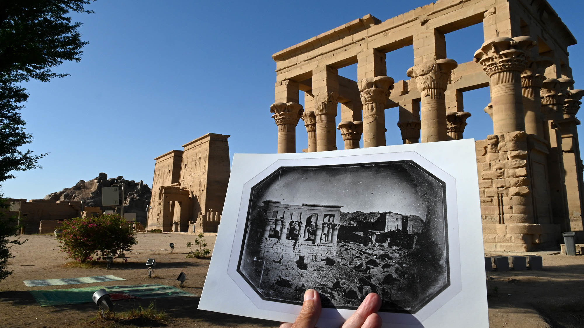 Partager Partager Pour sa quatrième et dernière carte blanche, notre invité de la semaine, Florent Basiletti, Directeur de la Fondation Manuel Rivera-Ortiz, nous dévoile en exclusivité, la nouvelle recherche menée par l’artiste, théoricien et historien, Gilles Massot sur le Mystère des Pyramides. En mars dernier, la Fondation Manuel Rivera-Ortiz avait consacré une grande rétrospective de son travail à travers « L’espace entre les choses ». Découvrez aujourd’hui, son tout dernier projet ! Extrait carnet de Gilles Massot Extrait carnet de Gilles Massot Suite aux expositions au sein du Musée Muséum départemental des Hautes-Alpes et de la rétrospective intitulée « L’espace entre les choses » à la Fondation Manuel Rivera-Ortiz, nous explorons la nouvelle recherche de Gilles Massot, artiste, théoricien et historien. Sa pratique dans les arts visuels se concentre plus particulièrement sur la théorie de la photographie et sa relation au temps et à l’espace. En 2010, il entreprend une étude approfondie sur Jules Itier, le photographe qui a réalisé les premiers daguerréotypes de la Chine, des Philippines, du Sri Lanka, de Singapour et du Vietnam en 1844-45. Sous le nom de son alter ego, le Professeur Ma, Gilles Massot mène également une recherche sur les parallèles et les croisements entre les histoires respectives de la photographie et de la mécanique quantique. En exclusivité, découvrez sa nouvelle recherche sur le Mystère des Pyramides. Le Mystère des Pyramides Gilles Massot Temple d’Isis sur l’Île de Philae, daguerréotype original Jules Itier en 1846/ Re-photographié en situation par Gilles Massot en 2019. La question de la première photo existante des pyramides de Gizeh surgit dans le cadre de ma recherche sur Jules Itier. Ce daguerréotypiste précurseur avait visité l’Égypte en 1845/46 au retour d’un voyage en Asie en tant que conseiller économique de la Mission Lagrené dont les membres avaient négocié le premier traité diplomatique franco-chinois, le Traité de Whampoa, signé le 24 Octobre 1844. Itier était un inspecteur des douanes passionné de sciences qui s’était intéressé au daguerréotype dès son apparition. Il l’avait déjà utilisé lors d’une mission au Sénégal en 1843 et avait emporté sa malle de daguerréotypie à titre personnel pour ce voyage en Chine. Bien qu’amateur, il avait développé une compréhension intuitive que l’on peut dire visionnaire de ce nouveau medium pictural. Cette vision lui fit réaliser un corpus documentaire que ma recherche a établi comme contenant les premières photos existantes du continent asiatique (1) réalisées dans le cadre d’un des tout premiers tours du monde photographique (2). Le séjour en Égypte, réalisé à titre privé, lui permit de remonter le Nil jusqu’à Aswan, un voyage au cours duquel il réalisa un ensemble de trente-trois daguerréotypes connus. Le sujet en est principalement architectural, les sites archéologiques prenant la part du lion. Or chose étrange, parmi les nombreuses vues des monuments antiques alors déjà célèbres en Europe, aucune plaque ne montre les pyramides de Gizeh. Que s’était-il passé ? Comment les monuments les plus emblématiques de l’Égypte ancienne pouvaient-ils être absents d’une étude picturale montrant plusieurs vues des autres sites ? Les plaques étaient-elles perdues ? Ou n’était-il tout simplement pas allé méditer à l’ombre de leurs siècles ? Un concours de circonstances fortuites me permit d’apprendre plus tard que c’était bel et bien cette deuxième option qui était la raison de cette absence intrigante. Mais l’observation initiale titilla ma curiosité. Itier était un des tout premiers voyageurs à utiliser la caméra en Égypte. Paradoxalement, le symbole incontournable de cette civilisation ne faisait pas partie des images ramenées. Qu’en était-il alors dans le travail des autres photographes ? Quelle pouvait être la première photo des pyramides ? Une photo non seulement connue pour avoir été prise mais surtout existante ? Une image dans laquelle nous pourrions voir aujourd’hui la lumière du passé matérialiser ces colosses qui ont fasciné l’humanité depuis la nuit des temps ? Quelle est l’image dans laquelle ces monuments-repères de l’Histoire ont basculé de l’antiquité à la modernité dans leur représentation ? Serez-vous surpris si je vous dis que cette image est d’une nature presque quantique ? De fait, ce moment clef aurait dû avoir lieu pratiquement avec l’apparition de la photographie elle-même. Dans son annonce historique du 19 août 1839, Arago présentait le daguerréotype comme une invention destinée à révolutionner le monde des arts et des sciences. Un des exemples les plus parlants utilisé pour soutenir son argument mentionnait précisément l’utilisation du daguerréotype dans l’étude des antiquités égyptiennes. Trois mois plus tard, le peintre orientaliste Horace Vernet s’embarquait pour son troisième voyage en Orient, accompagné par son assistant Frédéric Goupil-Fesquet. Leurs bagages comprenaient un matériel complet de daguerréotypie dont Goupil-Fesquet avait appris le maniement afin de compléter les recherches picturales de Vernet par des documents d’un réalisme perçu comme inégalé jusque-là. Goupil-Fesquet publia à son retour un journal de voyage dans lequel on apprend que la première utilisation du daguerréotype eu lieu le 7 Novembre 1839 à Alexandrie pour faire une vue du harem de Mehmet Ali, le Pacha d’Égypte. Le 20 Novembre, il était à l’œuvre sur le plateau de Gizeh et après beaucoup d’essais infructueux, du fait de l’intensité lumineuse, il finit par réaliser une vue satisfaisante de la pyramide de Khéops. Leur voyage se poursuivit en Palestine et en Syrie. Des trente plaques ramenées, huit furent utilisées par l’opticien-éditeur Lerebour pour le premier volum