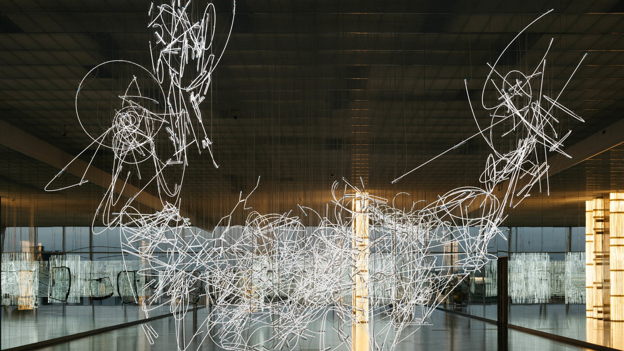 Partager Partager Au moins 3 bonnes raisons d’aller au Centre Pompidou Metz autour de la chorégraphie de lumière de l’artiste britannique Cerith Wyn Evans, d’une nouvelle cartographie décoloniale par le commissaire Manuel Borja-Villel, ancien directeur du musée Reina Sofia de Madrid et du ballet coloré multisensoriel de l’artiste allemande Katharina Grosse. « lueurs empruntées à METZ » Cerith Wyn Evans Cerith Wynn Evans vue de l’exposition lueurs empruntées, Centre Pompidou Metz courtesy the artist, White Cube, Marian Goodman Galleryphoto Lewis Ronald Cerith Wynn Evans vue de l’exposition lueurs empruntées, Centre Pompidou Metz courtesy the artist, White Cube, Marian Goodman Galleryphoto Lewis Ronald L’exposition propose un véritable voyage sensoriel, entre la lumière, le son et la matière. Une calligraphie lumineuse alchimique régie par une série de déformations imperceptibles au premier regard. Le parcours intervient dès le Forum et se prolonge toute la galerie 3. Pour le Forum l’artiste imagine une recréation des jardins d’hiver en hommage à Marcel Broodthaers qu’il vénère. Le motif du palmier renvoie à la colonisation belge et marchandisation de la nature. De plus des colonnes d’inspiration dorique s’inscrivent dans l’histoire classique du musée même si leurs ampoules sont obsolètes. De fausses caisse d’emballages complètent le dispositif. Dans la galerie 3, cinq colonnes s’allument et s’éteignent par séquence entre aveuglement et transparence selon un rythme impossible à déterminer. Un instrument hybride est constitué de tubes de cristal qui inspirent et expirent l’air comme le feraient des poumons. Les nombreuses sculptures en néon utilisées par l’artiste reposent sur les propriétés magiques de ce gaz, des énergies mystérieuses. Leur calligraphie reprend les chorégraphies stylisées du théâtre nô. Quant aux lustres, ils transposent le son en lumière selon un rituel animiste. Les pare-brise de voitures et de camions fissurés renvoient aux écrans de téléphone et à La Mariée mise à nu par les célibataires, même de Duchamp. Les boucles aléatoires et les distorsions sonores évoquent un monde en constante évolution, une fragmentation de l’écho, où la perception devient incertaine. La matière extensive pourrait aussi faire référence à l’extension de l’œuvre dans l’espace, brouillant les frontières entre ce qui est perçu et ce qui est réel face aux grandes baies vitrées sur la ville de Metz. Ces éléments créent un espace éblouissant où les visiteurs sont invités à expérimenter non seulement visuellement, mais aussi auditivement, des effets psychologiques qui bouleversent la notion de temporalité selon la doctrine du panpsychisme d’un univers régit par la conscience et la cognition. Une symphonie de la distorsion et de l’enchevêtrement. Olivier Marboeuf, « Péyi en retour », 2024-2025 Production Centre Pompidou-Metz, Photo Marc Domage, Exposition Après la fin 2025 « Après la fin. Cartes pour un autre avenir » A l’invitation de Chiara Parisi, Manuel Borja-Villel déroule au Centre Pompidou-Metz une histoire archipélique de la pensée et cartographie décoloniales en rupture avec la vision eurocentriste dominante. Sans chronologie ni chapitre, l’exposition interroge les mémoires invisibilisées et souterraines autour de constellations agissantes et subversives entre les corporéités Caribéennes, les rituels afro-brésiliens, les abysses de l’Atlantique autour de 40 artistes et voix diasporiques internationaux. Son titre nous donner des cartes à jouer dans ce qui représente un vaste puzzle qui déjoue nos attentes. Ahlam Shibili, « Occupation », Al-Khalil/Hébron, Palestine 2016-2017Copyright the artist Photo Marc Domage, Exposition Après la fin 2025 Centre Pompidou Metz M’barek Bouhchichi, « Reprendre les gestes interrompus », 2023Collection de l’artisteCopyright : © M’barek Bouhchichi © Centre Pompidou-Metz / Photo Marc Domage / Exposition Après la fin / 2025 « Danser les étoiles », Katharina Grosse, Centre Pompidou Metz Katharina GrosseDéplacer les étoilesPhoto: Jens ZieheCourtesy Centre Pompidou- Metz; Gagosian; Galerie Max Hetzler; Galerie nächst St. Stephan Rosemarie Schwarzwälder(C) Adagp, Paris 2024 L’artiste allemande investit le Parvis, la Grande Nef et le Forum du Centre Pompidou avec des installations magistrales en réponse au lieu. Si l’installation dans le Forum, the Bedroom visible depuis le 1er juin 2024 a cédé la place aux incandescences de Cerith Wyn Evans, le projet pour la Grande Nef qui se déploie jusque sur le Parvis est très impactant. Se déployant sur 8 250 m², le grand drapé suspendu dessine un paysage ondoyant annoncé par une installation végétale. Des arbres en provenance de la Forêt noire mêlés à des souches et des troncs sortent d’un mur blanc immaculé. Le tout en équilibre précaire. Puis l’on aperçoit des trouées de couleurs qui s’échappent de ce qui ressemble à un rideau de théâtre. Jouant de nos perceptions et émotions, l’artiste déploie un espace éphémère, une véritable déflagration. Le titre est inspiré par le ciel de Sydney à l’occasion de son exposition à Carriageworks en 2018 mais aussi des sphères de l’Europe comme le souligne Chiara Parisi, commissaire de l’exposition qui a suivi la carrière de l’artiste depuis leur rencontre à la Villa Médicis. Des couleurs pulvérisées à l’aérographe selon le procédé qu’elle choisit pour un univers en expansion que l’on peut parcourir, toucher, ce qui rare, voir interdit en général pour une œuvre d’art. Comme si on rentre dans le ventre d’une baleine résume Chiara Parisi. En réponse à l’architecture de Shigeru Ba, un glissement est opéré jusqu’au parvis. Qu’elles soient dissonantes ou harmonieuses, toutes les couleurs sont confrontées les unes les autres dans une négociat