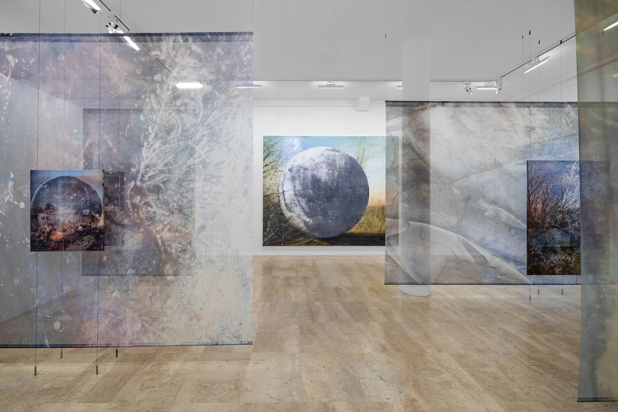 Partager Partager L’édition 2025 du Prix Marcel Duchamp se transpose au Musée d’art moderne de Paris avec comme finalistes : Bianca Bondi, Xie Lei, Eva Nielsen, Lionel Sabatté. Cette année j’ai décidé de mettre l’accent sur Eva et Bianca dont je connais bien le travail. Récemment exposée à la Verrière, Bruxelles, Fondation d’entreprise Hermès, dont elle avait fait une lecture magistrale, j’ai pu interviewer Eva à cette occasion. Elle fait partie de la remarquable exposition Dans le flou au musée de l’Orangerie et, plus inentendu, de la nouvelle galerie du Temps du Louvre Lens. A l’affiche des Rencontres d’Arles en 2023, elle est représentée par les galeries Peter Kilchmann et The Pill. Ente trouble et persistance rétinienne, sédimentation du regard et révélations successives, le parcours conçu à l’occasion du Prix Marcel Duchamp, joue de multiples strates, comme une traversée. Eva Nielsen, accompagnée de Julia Garimorth, co-commissaire, ont répondu à mes questions. Eva Nielsen vue de l’installation Prix Marcel Duchamp 2025 Adiaf Musée d’art moderne de Paris Adapg 2025 photo Hafid Lhachm Julia et Eva : Comment avez-vous organisé ce dialogue entre les œuvres, qui nous entraîne dans une sorte d’expérience ? Si l’on reprend la chronologie au tout début de l’année 2025 au moment de l’annonce des finalistes, tout a commencé lors de la visite d’atelier. Nous avons échangé autour de différentes expositions comme celle sur l’âge atomique du musée et la toile de Barnet Newman « Pagan Void » qui partageait des résonnances. Julia a insisté sur le mot surgissement que j’ai trouvé décisif. Quand j’ai su que j’allais avoir cet espace-là, j’ai voulu vraiment être dans la caméra obscura, dans le fragment, ce qui se donne à voir ou se dérobe. Comme je suis toujours à la fois entre photographie et peinture, je me suis dit, ce principe de surgissement peut se faire par strates successives. Et c’est vraiment ce qui a été l’élément déclencheur. C’est pour ça que j’ai organisé cette présentation autour de Rift. Portrait d’Eva Nielsen courtesy de l’artiste et de la galerie Peter Kilchman Eva, Allons vers votre toile monumentale Rift, comment avez-vous organisé cette focale ? J’ai une obsession depuis quelque temps en tant que peintre, artiste, pour les marais, les sédiments, parce que je trouve qu’il a un point de fusion intéressant entre les marais, les marécages et la peinture même. Donc il y a quelque chose aussi de la matérialité que je trouve saisissante et la question de l’horizon, de la lisière, de ce qui se donne à voir, ou qui se dérobe à la vue. J’avais en tête cette série de Georgia O’ Keeffe dont on avait parlé avec Julia, les bones, qui sont vraiment des os qu’elle récoltait dans le désert, près de chez elle, dégageant aussi cette immédiateté. Il était intéressant que ça devienne une architecture, en même temps quelque chose qui vient obstruer et en même temps une porte d’entrée vers un horizon potentiel… Marianne Derrien, (rapporteur de mon projet) a utilisé le mot futur préhistorique que je trouve très juste. Ce doute qui s’instaure sur la temporalité de ce qui est donné à voir m’a encore une fois donné l’élan autour de cette question de l’organisation du parcours. Julia, concernant la scénographie, comment avez-vous choisi d’installer ces parois parallèles ? Cette scénographie évoque une mise en abîme où le visiteur se perd. On se retrouve immergé entre ces différentes couches, comme si l’on pénétrait dans la matière elle-même. Lors de ma visite de l’atelier, j’ai été fascinée par la façon dont Eva construit ses œuvres, par la relation qu’elle établit entre la photographie, la sérigraphie et la peinture. On a l’impression que la peinture ouvre un espace illusionniste, tandis que la gravure, au même niveau que la toile, ferme l’espace vers l’avant. Le travail d’Eva joue entre superposition, immersion et illusion de chevauchement, révélant finalement une juxtaposition. Quand on est devant une telle toile, on est troublé par les différents niveaux qui s’entremêlent et j’avais le sentiment que cette installation avec les voiles correspondait exactement à ce qu’on ressent. Eva, ce sont un peu des images d’un monde flottant ? C’était le projet de Julia et je trouve le résultat formidable. C’est intéressant parce que la suspension des écrans traduit cet état. Pour moi c’était un peu la question des limbes et des lisières qui sont troubles. Le regard que m’a apporté Julia en ce qui concerne la présence de tous ces voilages est très pertinent. Elle m’a retiré un doute et encouragé à tous les mettre. Je réalise à présent que c’était impossible de faire autrement parce qu’effectivement on est sur ces surgissements progressifs jusqu’à Rift. Le regard est attiré vers l’autre pôle que j’ai vu à Bruxelles qui créé un contrepoint complémentaire Effectivement, c’est vraiment, à la vue de la version nuit, qu’est advenue la version d’une aurore boréale, une version diurne. Ce qui m’a vraiment saisi, dans ce puzzle de scénographies, c’est la recréation d’une sphère qui est complètement interprétable. Et les regardeuses et regardeurs ont des évaluations très différentes de ce que ça peut être. il y a aussi cette histoire de la cicatrice, quelque chose qui est aussi abîmé, érodé. Cette sphère, que j’ai trouvée pas très loin de moi, en banlieue parisienne a été beaucoup rafistolée. Et il y avait l’apparition aussi dans le béton, de zones qui deviennent à la fois lunaires et géographiques et qui ont été beaucoup mises en exergue lors de la sérigraphie. Ça m’a intéressée de voir aussi l’autonomie du motif, avec ce puzzle de sérigraphie on se trouve presque au plus près de l’objet même et dans toutes se