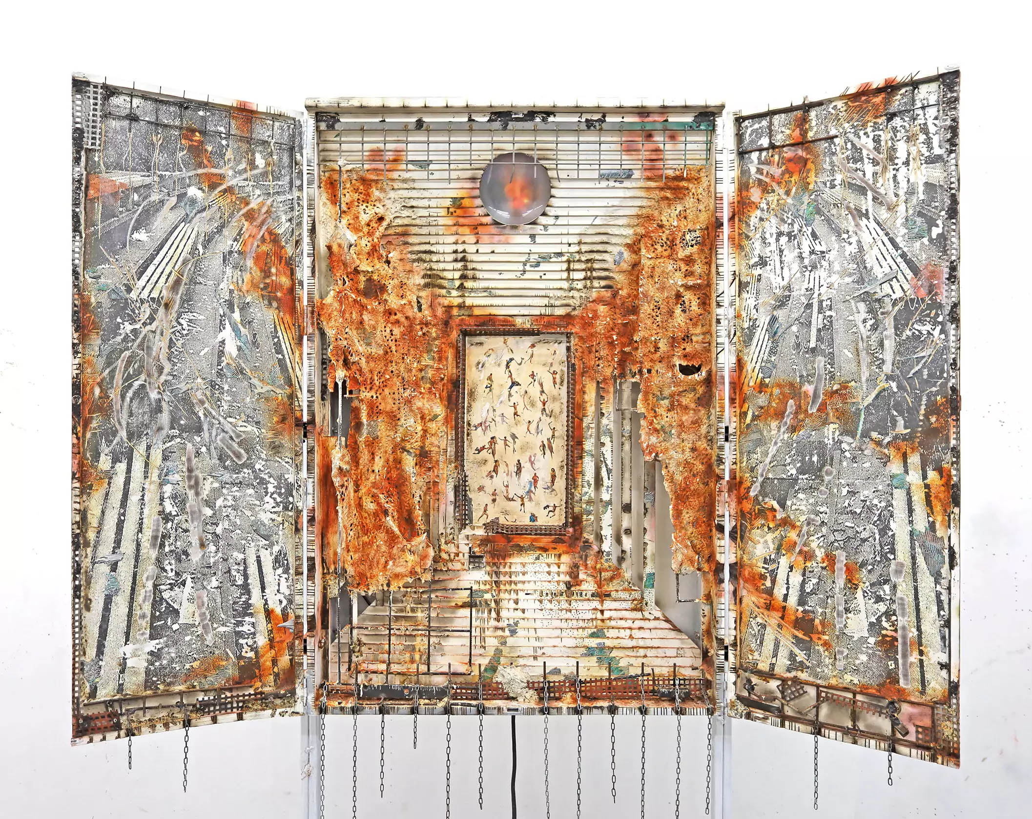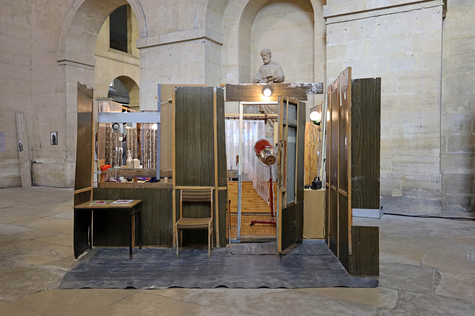 Partager Partager Retour sur les nombreuses propositions de cette semaine de l’art 2025 et le choix gagnant de Julien Frydman de la chapelle Saint-Louis de la Salpêtrière pour OFFSCREEN. Ce lieu symbolique est devenu une vaste chambre d’échos de propositions formelles et conceptuelles amplifiées par ces murs chargés d’histoires et de vécus (de nombreuses femmes ont été traitées pour hystérie par Charcot à la Salpêtrière). Pour sa troisième participation Harlan Levey Projects (Bruxelles) présente l’artiste Marcin Dudek, né en Pologne et basé en Belgique, dont le projet entre en profonde résonance avec l’architecture de la chapelle. Connu pour ses installations évocatrices intitulées Memory Box, ainsi que pour ses peintures, sculptures et performances, Marcin Dudek développe une pratique pluridisciplinaire profondément ancrée dans son vécu personnel, qu’il reformule à travers un prisme d’abstraction sociale. Son travail explore les thèmes de la psychologie des foules, de l’identité, du traumatisme et des stratégies de survie, façonnées par les affiliations sous-culturelles et la transition turbulente du communisme vers l’hypercapitalisme. Harlan Levey, cofondateur de la galerie, réaffirme son engagement envers OFFSCREEN, soulignant que la direction curatoriale unique du salon constitue une raison majeure de sa participation suivie. Le corpus d’œuvres de Dudek a déjà été présenté lors d’une exposition personnelle au IKOB – Musée d’Art Contemporain d’Eupen, marquant un moment important dans son parcours. Je l’avais découvert à cette occasion. Fondé à Bruxelles en 2013 par Winnie Kwok et Harlan Levey, Harlan Levey Projects poursuit comme ambition d’être un espace de dialogue social et d’exploration interdisciplinaire. Depuis, la galerie a évolué pour se concentrer sur la collaboration et le soutien à des pratiques artistiques ambitieuses et conceptuelles. Travaillant avec un groupe restreint d’artistes, HLP défend des projets fondés sur la recherche, qui interrogent des questions sociales, scientifiques et technologiques complexes. En 2021, la galerie a déménagé dans un nouvel espace de 250 mètres carrés à Molenbeek, qui abrite désormais des surfaces d’exposition et des ateliers d’artistes. Marcin Dudek, Zakład, 2023 – 2025 Installation view, OFFSCREEN Paris, 2025 Vous présentez deux œuvres remarquablement immersives, Zakład (2023–2025) et Nestman (2025) de Dudek : quels sont les enjeux ? Zakład est une reconstitution à l’échelle réelle, hyperréaliste, d’un salon de coiffure occupé illégalement, situé dans le sous-sol d’un immeuble résidentiel de Cracovie, un espace à l’origine aménagé par la sœur de l’artiste durant les années tumultueuses qui ont suivi l’effondrement de la République populaire de Pologne. L’artiste a minutieusement démonté puis réassemblé le salon en utilisant ses matériaux, installations et surfaces d’origine. Des cheveux humains, collectés sur plusieurs années, sont intégrés aux murs et à l’architecture, insufflant à l’espace des traces de vie à la fois littérales et métaphoriques. Le résultat est un environnement saisissant, tangible, qui brouille les frontières entre la résilience domestique, les économies informelles et les stratégies de survie post-communistes. Parallèlement, Marcin dévoile Nestman, un nouveau triptyque audiovisuel qui attire le spectateur par un rythme pulsé, proche de celui d’un club, écho d’une euphorie ou d’une agitation lointaine. Ce théâtre miniature et surréaliste se déploie comme une réinterprétation onirique du stade de football KS Cracovia, vue à travers le prisme de la psyché fragmentée d’un supporter. Sur le terrain, une foule de silhouettes nues se meut de manière chaotique, échappant au regard des arbitres, tandis qu’une fumée orange envahit les tribunes en nuages denses et corrosifs. Suspendue au-dessus de la scène, une sphère de verre diffuse en boucle des vidéos de matchs de football réels, filmées au téléphone portable, tissant ensemble obsession personnelle et rituel collectif, jusqu’à faire s’effondrer les frontières entre spectateur et spectacle. Ces œuvres illustrent parfaitement l’approche de Marcin : puiser dans l’expérience vécue pour construire des environnements chargés, qui invitent le visiteur à confronter les politiques de l’espace, de la mémoire et de l’identité. Marcin Dudek, Nestman, 2025 Qu’est-ce qui rend cette foire spéciale pour vous ? Ce qui me fait revenir à OFFSCREEN, c’est sa vision curatoriale unique. L’approche de Julien Frydman, qui crée des ponts entre la photographie et l’art contemporain, me semble à la fois pertinente et nécessaire. D’un côté, on découvre des œuvres ancrées dans l’avant-garde, et de l’autre, des pratiques plus récentes et expérimentales. Ce dialogue à travers le temps me touche particulièrement. À la différence d’autres foires, OFFSCREEN offre un espace de réflexion. Elle ne donne pas l’impression d’être une entreprise purement commerciale : elle est guidée par les idées et l’intention artistique. En tant que visiteur ou collectionneur, on n’est pas bombardé par mille sollicitations concurrentes, on est invité à s’engager plus profondément avec les œuvres. Que pensez-vous de la scène artistique parisienne ? La scène artistique parisienne me paraît incroyablement dynamique en ce moment. Au cours des dernières années, j’ai ressenti une ouverture croissante et un véritable processus d’internationalisation. Paris devient de plus en plus accueillante, non seulement pour les artistes, mais aussi pour la diversité des perspectives et des pratiques. Il se passe tellement de choses qu’il est impossible de tout voir, et c’est précisément ce qui rend la situation excitante : cela signifie que l’écosystème est en pleine 