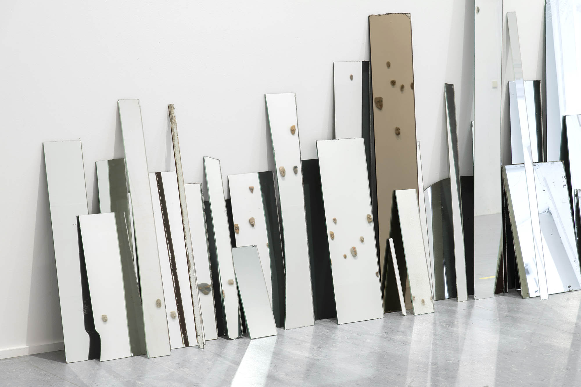 Dirk Snauwaert, directeur, est le commissaire de l’exposition « Nameless ». L’artiste iranienne basée à Berlin qui avait participé à l’exposition inaugurale du WIELS revient avec un corpus d’œuvres inédites engageant des matériaux et dispositifs renouvelés comme avec la série des « Side Leaps ». Le titre « Nameless » renvoie à l’absence de nom, d’état, à ce qui a été refoulé, révoqué, l’innommable. Des choses et des objets dont l’indétermination et l’instabilité, la fragmentation et le déplacement irriguent toute la démarche de l’artiste en écho aux traumatismes des guerres et de l’exil. L’intervention dans la cage d’escalier sur l’ancien silo du bâtiment est très impressionnante : comme une enseigne lumineuse privée de sa fonction et détournée en glyphes éteints et muets, d’une écriture qu’elle est la seule à maîtriser.