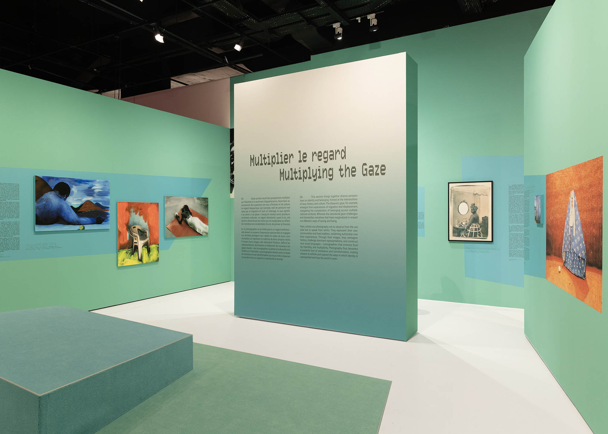 Partager Partager À propos de l’exposition Gen Z. Un nouveau regard, présentée par Photo Elysée à Lausanne et conçue par les curatrices Nathalie Herschdorfer, Hannah Pröbsting et Julie Dayer¹. Cet essai vous propose quelques pistes de réflexions critiques sur la vaste exposition Gen Z. Un nouveau regard qui réunit soixante-six jeunes photographes et artistes. Mon intention est de mettre en avant aussi bien les qualités de cette exposition que les éléments qu’il serait pertinent d’interroger afin d’en évaluer les enjeux problématiques sous-jacents. Pour situer ceux-ci, il s’agit de revenir sur la genèse du projet et de mettre en relation le travail de l’équipe curatoriale, le processus de sélection des artistes, le rôle de la scénographie et l’expérience de la visite, ainsi que d’établir les liens entre les photographies et les thématiques auxquelles sont sensibles les jeunes. Cette exposition consacrée à l’émergence me semble être d’un grand intérêt en raison des multiples sujets abordés et de la diversité des approches artistiques qu’elle permet de découvrir. © Francesca Hummler, Der Stammbaum [Arbre généalogique], 2021, de la série Unsere Puppenstube [Notre maison de poupée], 2021. Courtoisie de l’artiste Préambule En préambule, j’aimerais vous présenter deux projets qui s’inscrivent dans cette pluralité des démarches photographiques. Le projet de Francesca Hummler, réalisé en collaboration avec sa sœur cadette Masantu, condense plusieurs thèmes majeurs de l’exposition dans une interaction subtile entre soi, autrui, la société et le monde, les questions raciales et décoloniales, les relations à l’espace géographique et au temps à travers l’histoire transgénérationnelle et migratoire de sa propre famille. Dans une mise en scène ludique évoquant le monde de l’enfance, la maison de poupée héritée des arrière-grands-parents de l’artiste, symbole par excellence du foyer, se transforme en espace identitaire d’appartenance pour sa sœur adoptive en quête de légitimité au sein de la famille. La main de Masantu s’apprête à ajouter son propre portrait au mur couvert de photos de la famille Hummler prises sur plusieurs générations. La scène fonctionne ici comme une métaphore visuelle de la volonté des deux sœurs de représenter les liens d’amour et de complicité qui les unissent. Francesca Hummler, série Unsere Puppenstube, 2021. Vue d’exposition, Gen Z, Photo Elysée, Lausanne, 2025 ; photo : © Khashayar Javanmardi. Courtoisie Photo Elysée pour toutes les vues d’exposition L’artiste explique ainsi sa démarche : « En m’appuyant sur mon expérience de fille d’immigré·e·x·s allemand·e·x·s aux États-Unis, j’étudie dans mon travail les résonances psychologiques de la stigmatisation sociale, la post-mémoire et la manière dont les traumatismes se transmettent de génération en génération, non seulement par le biais des archives, mais à travers les corps eux-mêmes. La série Unsere Puppenstube [Notre maison de poupée] est une réflexion sur les complexités de l’identité et du sentiment d’appartenance, en particulier chez les personnes dont l’histoire est multiple. […] La série, qui aborde les thèmes de l’adoption, de l’identité raciale et des liens affectifs, invite à réfléchir à la manière dont nous cataloguons les relations et les identités dans nos interactions sociales. Selon moi, se sentir à sa place, c’est être suffisamment en sécurité pour explorer ce qui nous procure de la joie et nourrit notre curiosité. C’est la liberté d’exprimer nos émotions et que quelqu’un·e·x nous réponde : « Je te comprends. » C’est être accepté·e·x totalement, sans jugement, sans condition. À travers ma photographie, j’explore le moi et l’identité ; je saisis la complexité de personnes dont les identités – culturelles ou autres – sont fracturées et la façon dont elles négocient avec le sentiment d’appartenance dans cet entre-deux. […] » – Francesca Hummler² De gauche à droite : Emma Sarpaniemi, série When the Sun Goes Down We See Lemons, 2019-en cours ; Lê Nguyên Phương, séries Giao Điểm [Intersection] et Vở ô ly [Cahier quadrillé], 2024 ; Cheryl Mukherji, série Ghorer Bairer Aalo, 2020-2021Dans les pratiques artistiques actuelles, la collaboration est un processus de création important qui permet de faire dialoguer vécu individuel et collectif, de dépasser la sphère intime pour inscrire un projet dans un contexte social, géopolitique et historique³. Cette approche participative est particulièrement pertinente pour les artistes qui travaillent à une » contre-histoire » de leurs lieux d’appartenance, c’est-à-dire à une relecture critique et alternative des récits hégémoniques.⁴ Dans Gen Z, Lê Nguyên Phương expose deux séries de 2024, Giao Điểm [Intersection] et Vở ô ly [Cahier quadrillé], issues d’un plus vaste projet, Thành Phẩm (2021-en cours). Images et textes ont été réalisés en collaboration avec ses proches, en particulier son père et son partenaire. À partir de son expérience personnelle, l’artiste nous propose une contre-archive visuelle et décoloniale de l’histoire du Viêt Nam. Il remet en question les discours dominants sur les conflits du 20ème siècle dans la région, qu’il s’agisse des narratifs occidentaux sur la guerre du Viêt Nam ou des récits relayés par le système scolaire de son propre pays. En 1986, son père avait d’ailleurs participé à une intervention militaire secrète du Viêt Nam au Cambodge qui n’est toujours pas reconnue officiellement.⁵ © Lê Nguyên Phương, Untitled, de la série Vở ô ly [Cahier quadrillé], 2024. Courtoisie de l’artiste. » J’espère montrer au public qu’il est possible de mettre en œuvre, dans sa pratique photographique, des processus collaboratifs comportant 