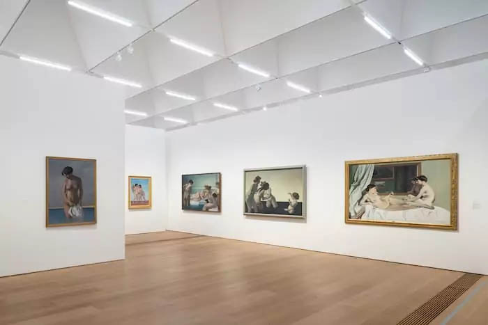 Le parcours sur 1400m2 est réparti entre deux étages et séquencé de façon chrono-thématique. La question des nus et de la représentation du corps féminin, l’exploration de l’intime et ses ambiguïtés, des apparences et hypocrisies d’un milieu bourgeois qu’il intègre à travers son mariage avec la fille du célèbre marchand Alexandre Bernheim, de certaines dissonances sociales en font un artiste peu conventionnel pour son époque et relativement précurseur. C’est d’ailleurs ce que souligne l’artiste contemporaine Gloria Oyarzabal qui revisite la figure de l’odalisque à partir de la toile iconoclaste « La Blanche et la Noire » et selon une approche décoloniale à Photo Elysée mais n’allons pas trop vite, j’y reviendrai…