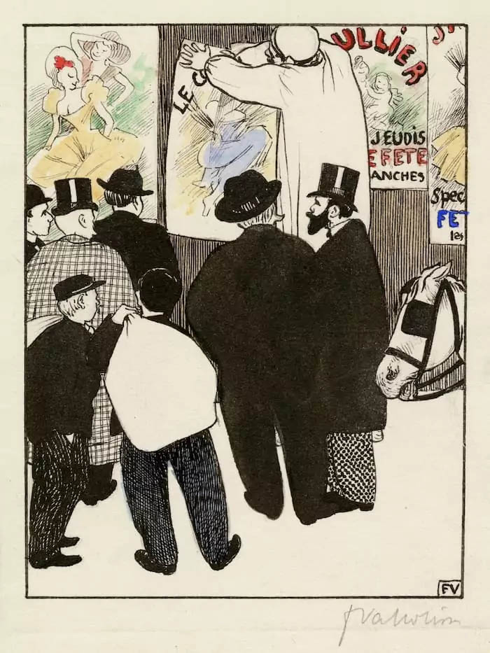 Félix Vallotton, L’affichage moderne, dessin pour le livre Les Rassemblements, 1896