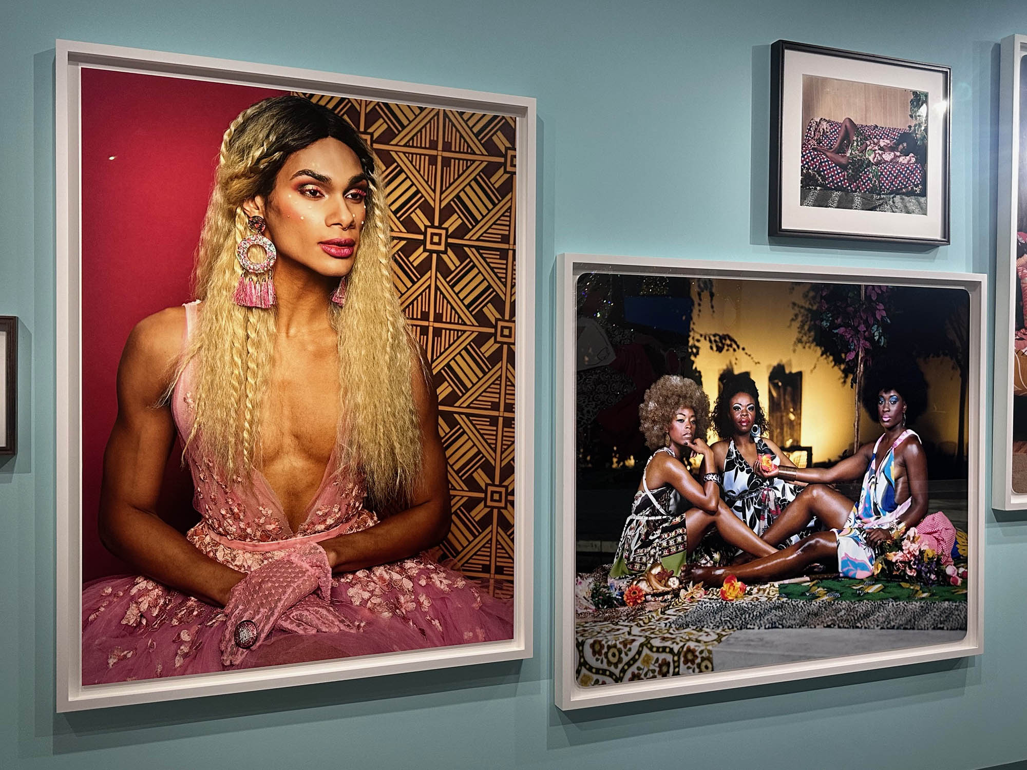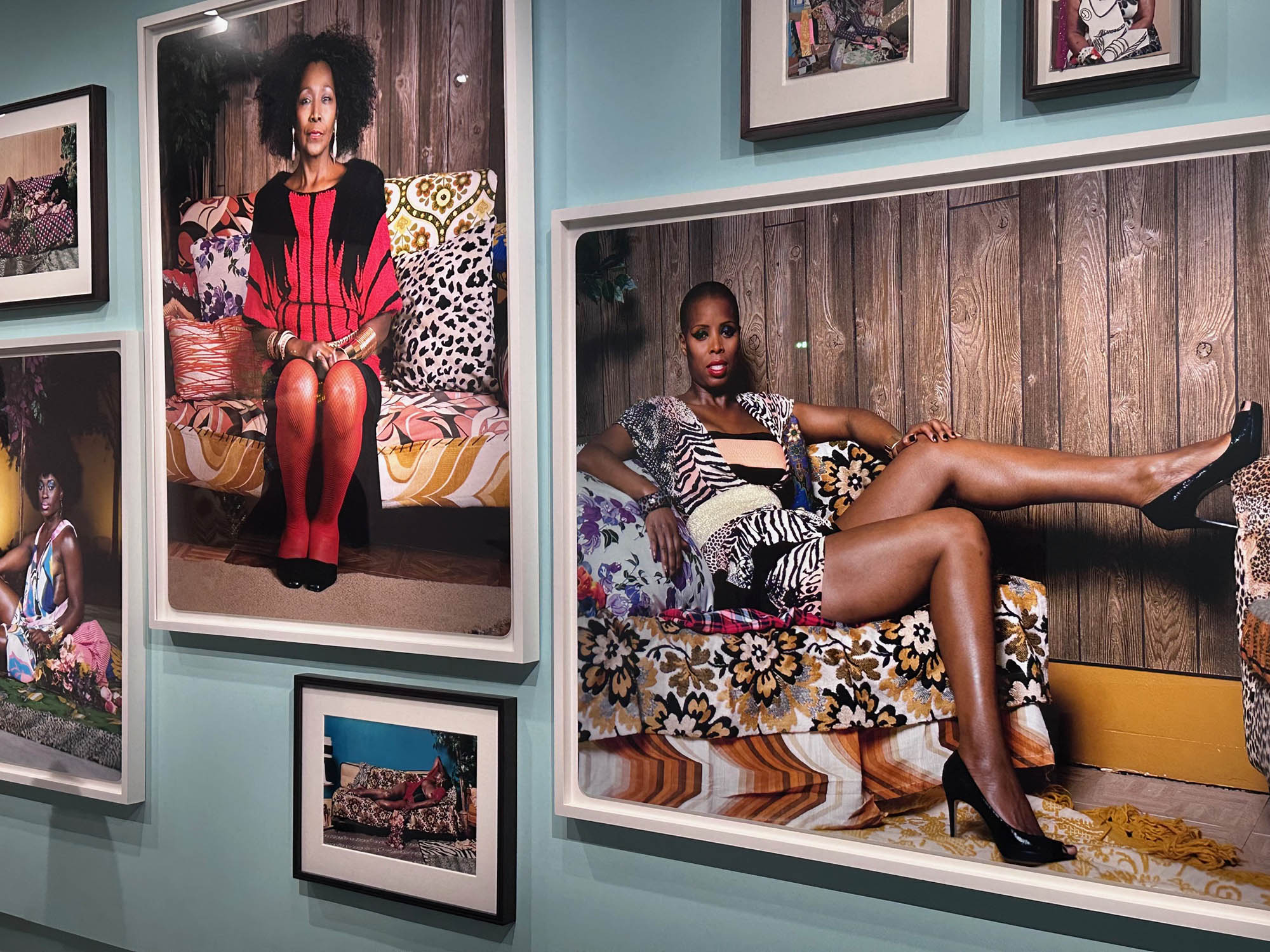 La photographie, dans cette reprise, joue un rôle décisif. On sent que tout commence là : dans la construction d’un décor, dans l’invention d’un espace où le modèle peut réellement habiter la scène. L’atelier devient un théâtre intime, non pour fabriquer du faux, mais pour produire une vérité relationnelle : on voit des corps en confiance, des postures qui ne trahissent pas la peur d’être jugées. Les vêtements, les motifs, la mode — héritage maternel, geste d’affirmation — ne servent pas à « habiller » le sujet mais à le déclarer. Et quand Thomas s’empare d’archives, comme dans Nus exotiques, la question se renverse : comment reprendre une image construite « par et pour » un regard dominateur sans reconduire sa violence ? La réponse de l’artiste est une chirurgie du visible : elle agrandit, repeint, couvre de verre teinté, incruste, recompose. Elle altère la photographie jusqu’à la rendre instable, comme si l’archive cessait d’être un document pour devenir un champ de bataille. La fétichisation est nommée, mais surtout défaite par transformation : l’image ne peut plus être consommée comme avant, elle résiste parce qu’elle s’est métamorphosée.