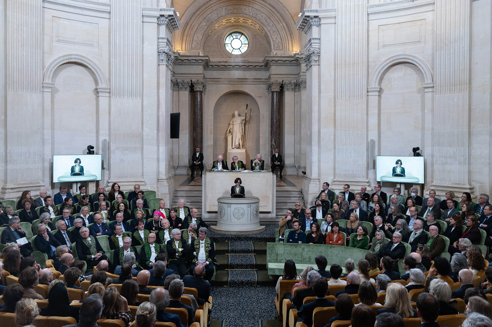 Partager Partager Il y a deux ans, l’Académie des Beaux-Arts annonçait le nom de la photographe appelée à occuper le sixième fauteuil de la section photographie. Valérie Belin avait été choisie à l’issue d’un appel à candidatures et rejoignait alors les membres les plus anciens de la section, aux côtés de Yann Arthus-Bertrand, Sebastião Salgado et Jean Gaumy, ainsi que de deux femmes élues ces dernières années : Dominique Issermann et Françoise Huguier. Mercredi 4 février, la photographe a été officiellement installée sous la Coupole du Palais de l’Institut de France lors d’une cérémonie solennelle. Installation Valérie Belin sous la coupole de l’Institut de France © Edouard Brane La photographe Valérie Belin occupe le fauteuil VI de la section de photographie, nouveau fauteuil créé en 2022. La séance d’installation s’est déroulé mercredi dernier, elle a été officiellement installée comme membre de la section de photographie de l’Académie des beaux-arts par sa consoeur Nina Childress, membre de la section de peinture. Monsieur Pierre Rainero, directeur Image, Style et Patrimoine de la Maison Cartier, lui a remis son épée d’académicienne. Installation Valérie Belin lors de la remise de son épée © Edouard Brane Epée de Valérie Belin © Edouard Brane Le thème de l’épée d’académicienne de Valérie Belin, créée par la Maison Cartier s’inspire de son oeuvre The Girl Who Never Died, issue de sa série Heroes. L’épée se distingue par des motifs et des typographies évoquant les enseignes lumineuses de l’Americana des années 1950. Entre images pop et comics américains, elle est composée d’un ensemble d’éléments symboliques qui se superposent et font écho à l’oeuvre de l’artiste. Ultime détail : l’étoile sur le pommeau se détache afin de se porter en broche. Installation Valérie Belin à l’Académie de Beaux-Arts © Edouard Brane De Gauche à Droite : Sylvie Hugues, Fred Boucher Marie Robert, Jean Gaumy, Valérie Belin, Dominique Issermann, Eric Karsenty, Yann Arthus-Bertrand et Jean-Luc Monterosso (Académiciens et correspondants) © Edouard Brane C’est la Maison de haute couture Alaïa qui a réalisé la tenue d’académicienne de Valérie Belin. La veste, pièce centrale du costume, est ornée d’un travail de broderies d’or exécuté par la Maison Lesage, sur un motif de feuilles d’olivier. La queue-de-pie et le pantalon cigarette en lainage noir sont façonnés sur mesure, dans une construction rigoureuse aux lignes nettes et sculpturales. On retrouve Valérie Belin aux Franciscaines de Deauville à l’occasion de son exposition Les Choses entre elles. Elle sera également présente en juin prochain au Palais Galliera dans le cadre de la 28ᵉ édition du Prix Picto de la Photographie de Mode, où elle officiera en tant que Présidente du jury lors de la remise des prix. INFORMATIONS PRATIQUES Les Franciscaines145B, avenue de la République 14800 Deauville sam24jan(jan 24)10 h 30 mindim28jui(jui 28)18 h 30 minValérie BelinLes choses entre ellesLes Franciscaines, 145B, avenue de la République 14800 Deauville Détail de l'événementPhoto : Super Girl (série All Star), tirage pigmentaire, © Valérie Belin L’exposition Valérie Belin – Les choses entre elles se tient aux Franciscaines de Deauville du 24 janvier au 28 Détail de l'événement Photo : Super Girl (série All Star), tirage pigmentaire, © Valérie Belin L’exposition Valérie Belin – Les choses entre elles se tient aux Franciscaines de Deauville du 24 janvier au 28 juin 2026. Elle présente une sélection d’environ soixante œuvres, couvrant l’ensemble du parcours de l’artiste, des premières photographies d’objets et natures mortes aux portraits féminins récents, en passant par ses séries emblématiques de mannequins et bodybuilders. La toute nouvelle série Cover Girls (2025) réalisée en héliogravure est montrée pour la première fois au public. À travers ces images, Valérie Belin explore la frontière entre objets et corps, réalité et illusion, questionnant la beauté, les stéréotypes et les codes de représentation à l’ère contemporaine. L’exposition propose ainsi un regard inédit sur l’univers singulier de l’artiste, où chaque photographie devient une réflexion sur le pouvoir des images et la perception du réel. Sous le commissariat d’Annie Madet-Vache, directrice du musée et de l’artiste, le parcours se déploie sur plusieurs niveaux et met en lumière l’évolution de la pratique photographique de Valérie Belin. Chaque espace est conçu pour créer un dialogue entre réalité et illusion, corps et objet, grâce à une scénographie soignée qui invite le visiteur à observer le détail des images tout en s’immergeant dans leur univers singulier. Dates24 Janvier 2026 10 h 30 min - 28 Juin 2026 18 h 30 min(GMT-11:00) LieuLes Franciscaines145B, avenue de la République 14800 DeauvilleOther Events Les Franciscaines145B, avenue de la République 14800 DeauvilleOuvert du mardi au dimanche de 10H30 à 18H30 Les Franciscaines Get Directions CalendrierGoogleCal A LIRE Valérie Belin fait son entrée à l’Académie des beaux-arts Révélation à la Maison Guerlain : Rencontre avec Valérie Belin Marque-page0