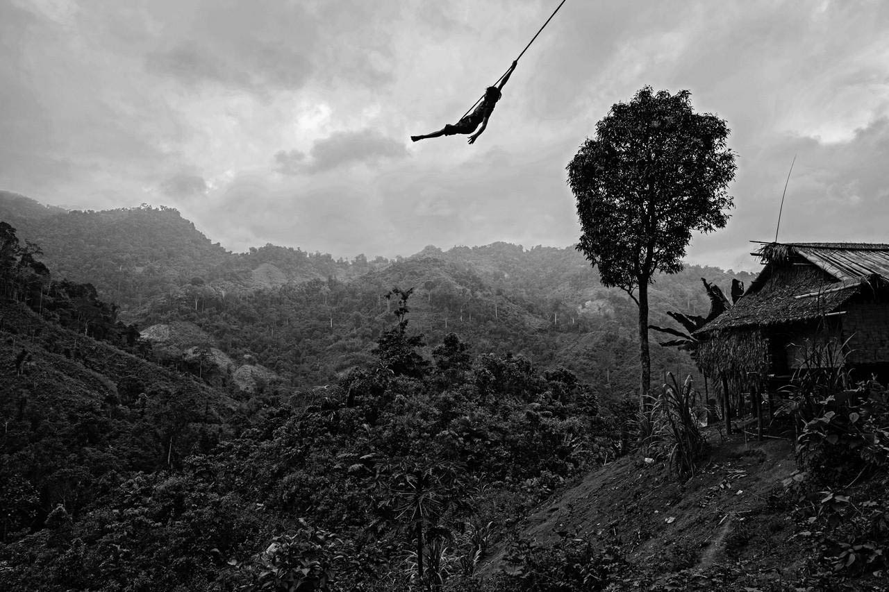 Partager Partager Le 25 février prochain sortira le 16ᵉ ouvrage de notre invité de la semaine, le photographe Pierre de Vallombreuse. Pour sa troisième carte blanche, il nous dévoile quelques-unes de ses images issues du livre Les Temps modernes. Ce travail sera également visible à partir du 27 février au Centre du Patrimoine Arménien, à Valence. Fruit de plus de 40 ans d’exploration au cœur de la vallée et de la vie des Palawan, au sud-ouest des Philippines, ce travail suit les évolutions d’un écosystème menacé et celles de cette communauté autochtone de chasseurs-cueilleurs et d’agriculteurs. La Vallée. Les Hommes des rochers, Tau’T batu Palawan. Philippines « Je témoigne du devenir des peuples autochtones depuis 40 ans sur les cinq continents abordant les bouleversements profonds et irréversibles qui les touchent, ainsi que leur environnement. Il y a une communauté, celle des Tau’t Batu, les « Hommes des rochers » sur l’île de Palawan aux Philippines. Elle vit dans une une vallée, autrefois isolée, que je « fréquente » depuis 1988 déjà…. 23 voyages, plus de 4 années sur place. Presque une vie. Les Temps modernes abordent les 12 dernières années de mon travail sur les Tau’t Batu, Depuis les années 1990, avec la construction des premières routes, la culture et l’équilibre écologique de l’environnement des Tau’t Batu se sont trouvés menacés. Interconnexion avec de nouvelles croyances, intrusion de l’administration et des systèmes de scolarisation, projets agricoles de grande ampleur, dépossessions des terres des Palawan des basses terres, dépendance au système économique mondialisé. La route qui mène aux pied de la Vallée est en voie d’être finie. Les Temps modernes : 2013 à 2025 La Vallée. Palawan. Philippines.2016.Un jeune se balance dans les airs. Une chute et il fera un vol de quelques centaines de mètres La Vallée. Palawan. Philippines. 2016. Deux sœur vont descendre des poules dans la maison située à côté de leur nouvelle rizière plus bas dans La Vallée La Vallée. Palawan. Philippines . 2015. moment de repos après le défrichage de la foret pour préparer les nouvelles rizières Par 35 degrés de chaleur ils travaillent sans discontinuer de l’aube a la tombée du jour La Vallée. Palawan. Philippines. 2015. massif sacré ou vivent des esprits. ces lieux ne sont jamais défrichés pour faire des rizières car les Palawan redoutent de fâcher les esprits qui y habitent La Vallée. Palawan. Philippines. 2016. Un chasseur La Vallée. Palawan. Philippines. 2018. Deux sœurs prennent un bain La Vallée. Palawan. Philippines. 2017. Jeune homme La Vallée. Palawan. Philippines. 2015. Un rapace capturé après avoir reçu un plomb d’une carabine finira dans une marmite le lendemain. La Vallée. Palawan. Philippines. 2025. Sur les basses terres . la route a été cimenté. Elle se rapproche de la vallée.Il y fait beaucoup plus chaud car il n y a plus l’ombre des feuillages des arbres coupés. Elle va booster les échanges commerciaux, l’expansion des grandes exploitations agricoles et l’implantation des nouveaux migrants, au détriment des Palawan des basses terres. Au bas de La Vallée. Sur les basses terres. Palawan. Philippines. 2025La nuit dans la chaleur des basses terres un hameau sur une terre appartenant a des Palawan de la Vallée, venus y vivre quelques années avant de retourner dans la Vallée ( la rotation due al agriculture sur brulis ). Elle n’ a encore été vendue à des hommes d’affaires. Ils y cultivent du riz et des légumes et des fruits et travaillent comme journaliers dans des plantations, etc Au bas de La Vallée. Sur les basses terres. Palawan. Philippines. 2025La nuit Au bas de La Vallée. Sur les basses terres. Palawan. Philippines. 2025La nuit dans la chaleur des basses terres un hameau sur une terre appartenant a des Palawan de la Vallée, venus y vivre quelques années avant de retourner dans la Vallée ( la rotation due à l’agriculture sur brulis ). Elle n’ a encore été vendue à des hommes d’affaires. Ils y cultivent du riz et des légumes et des fruits et travaillent comme journaliers dans des plantations, etc Au bas de La Vallée. Sur les basses terres. Palawan. Philippines. 2025deux sœurs dans leur moustiquaires regardent tik Tok sur leur téléphone portableLa nuit dans la chaleur des basses terres un hameau sur une terre appartenant a des Palawan de la Vallée, venus y vivre quelques années avant de retourner dans la Vallée ( la rotation due à l’agriculture sur brulis ). Elle n’ a encore été vendue à des hommes d’affaires. Ils y cultivent du riz et des légumes et des fruits et travaillent comme journaliers dans des plantations, etc . deux sœurs dans leur moustiquaires regardent tik Tok sur leur téléphone portable Au bas de La Vallée. Sur les basses terres. Palawan. Philippines. 2025 . La construction de la route progresse …..en direction de la Vallée à l’intérieur des terres provocant une ruée sur les motos dont certain font un maigre gagne-pain comme moto taxi , comme ce Palawan de la Vallée. L’engouement pour ces deux roues fut tel chez les jeunes que des spéculateurs véreux en échangèrent contre des terres… souvent vielles, les motos ont une durée de vie de 2 a 3 années. Et ceux qui ont échangé leur terres ont tout perdu … Témoin du devenir des peuples autochtones Depuis plus de 40 ans, Pierre de Vallombreuse témoigne de la vie des peuples autochtones, constituant un fond photographique unique sur 43 peuples en constante évolution. INFORMATIONS PRATIQUES Les temps modernes Pierre de Vallombreuse Éditions Odyssée 13,5 x 18 cm, 96 pages Sortie 25 février 2026 978-2-494767-53-9 19€ https://www.editionsodyssee.com/ Le Centre du Patrimoine Arménien14 rue Louis Gallet, 26000 Valence ven27fev(fev 27)10 h 00 mindim20sep(sep 20)18 h 00 minPierre de VallombreuseLes temps modernes Palawan, PhilippinesL
