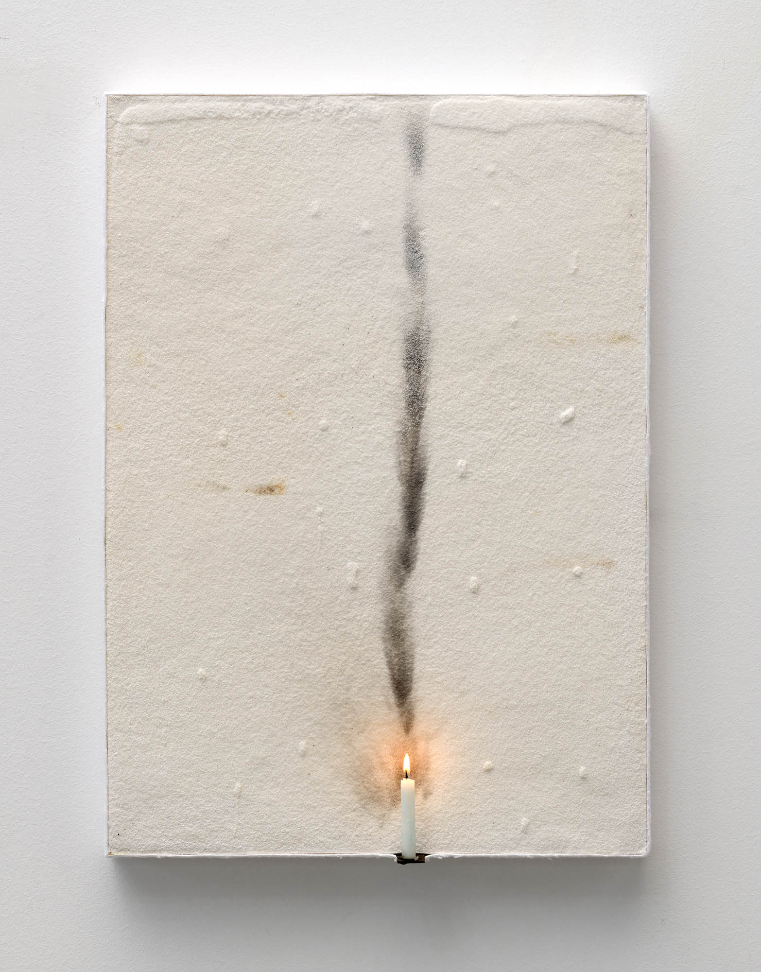 Pier Paolo Calzolari, Teatrino, 2024. Sel, combustion, bougie, fer, molleton, 70 × 50 × 8,5 cm.