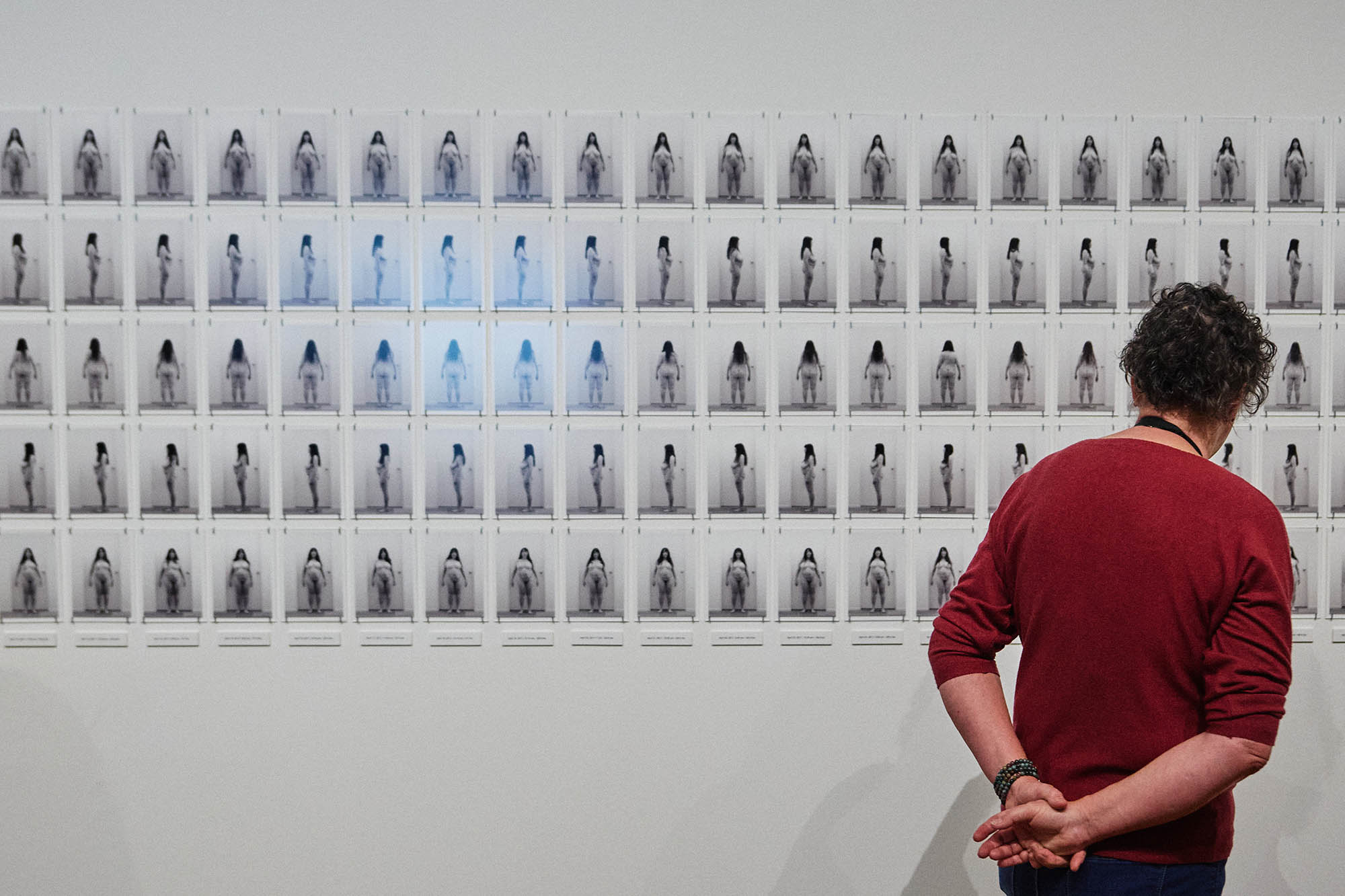 Partager Partager Avec « Picture Perfect », BOZAR Bruxelles analyse le rôle de la photographie dans la mise en scène de soi à l’ère numérique autour d’un paradoxe inhérent à la nature même du médium entre déconstruction et récupération des normes et usages de l’autoportrait, de la performance et diverses stratégies d’appropriation. Dans le prolongement de l’exposition sur la laideur et la beauté à l’époque de la Renaissance, Bellezza e Brutezza, ce volet qui s’étend des années 1970 à nos jours réunit 65 artistes confirmé.e.s ou en devenir dans un spectre géographique très large. Des pionnières et figures incontournables telles que Linder, Ana Mendieta, Martha Rosler, Zanele Muholi, Eli Cortias à des voix plus émergentes avec Amélie Testenoire Lafayette, Marilou Poncin ou Sarah Amrani, l’approche est volontairement non chronologique privilégiant à la fois l’intuitif, l’émotionnel et le discursif. Zoé Gray, directrice des expositions, que j’avais interviewée autour de Berlinde de Bruyckere et « When We See Us, un siècle de peinture panafricaine », affirme avec talent une vision prospective et décentrée avec cette nouvelle saison autour des normes et diktats de l’apparence selon une visée pédagogique et émancipatrice. Le commissariat de « Picture Perfect, Beauty Through a Contemporary Lens » sous-titre important, est assuré par Christel Tsilibaris qui l’envisage comme un manifeste à l’attention de sa fille de 9 ans et de l’ensemble des enfants et adolescent.e.s. Il est certain que si l’industrie de la beauté a pris une telle place dans nos vies par le biais de la publicité et de l’image, les questions d’éducation du regard et de santé mentale sont essentielles et dès le plus jeune âge. Défier les croyances dominantes, résister au culte de l’optimisation de soi et à la marchandisation des corps, remettre en question une imagerie raciste et sexiste, sont parmi les enjeux d’une exposition qui mérite à elle seule le déplacement à Bruxelles. Si les expositions de Cindy Sherman au FOMU d’Anvers, d’Eleanor Antin au Mudam du Luxembourg, « La mode et la psyché » au MoMu d’Anvers ou « Des Cheveux et des poils » au MAD Paris, ont retenu toute mon attention, BOZAR dépasse de loin les perspectives. Christel Tsilibaris revient sur les choix des artistes, les partis pris scénographiques et la large programmation associée : Sofa sessions (échanges informels), Bozar « all over the P(a)lace » (cinéma)…le tout dessinant une constellation mouvante de points de vue agissants. Elle a répondu à mes questions. Portrait de Christel Tsilibaris, Bozar Marie de la Fresnaye. Comment vous avez sélectionné les artistes ? Christel Tsilibaris. Mon choix ne s’est pas limité aux artistes contemporain.es. J’ai souhaité mettre en lumière différentes générations de créateur·rice·s ayant, à des moments variés, exploré cette thématique. Par ailleurs, les artistes réuni.e.s dans l’exposition ne se contentent pas d’aborder la beauté de manière ponctuelle. Dans leur pratique, cette question constitue un véritable axe de recherche et une réflexion critique en continu. Ainsi, les problématiques liées à la beauté, à l’identité et au genre occupent une place centrale dans leur démarche artistique, ce qui a été déterminant dans leur sélection. Ethel LILIENFELDInvisible Filterune production Le Fresnoy, Studio national des arts contemporains, 2022 MdF. Qu’est ce qui se joue avec l’installation vidéo qui nous accueille d’Ethel Lilienfeld ? ChT. Cette œuvre d’Ethel Lilienfeld se situe à un point de jonction entre les deux expositions consacrées à la laideur et à la beauté. Elle présente une figure féminine en double : d’un côté, une femme plus jeune ; de l’autre, une version plus âgée d’elle-même. La première pleure au-dessus d’un puits, tandis que la seconde recueille ses larmes pour les appliquer sur son visage, comme si elles avaient le pouvoir de lui rendre sa jeunesse. Cette scène ouvre de multiples pistes d’interprétation. Elle peut évoquer le mythe de Narcisse ou encore le Portrait de Dorian Gray. Mais elle résonne aussi avec des préoccupations très contemporaines, notamment pour les générations plus jeunes : celles des influenceurs et influenceuses qui recourent aux filtres numériques pour transformer leur apparence et parfois dissimuler leur identité réelle. A ce paramètre de la beauté, s’ajoute l’équation de la minceur et de la jeunesse. Derrière ces pratiques se lit la peur du jugement et la crainte de ne pas correspondre aux standards dominants. L’œuvre met ainsi en lumière une véritable obsession de l’image et du regard des autres. Zed Nelson, Elham, 19, and her mother, 55. Rhinoplasty ‘nose job’ operation. Tehran, Iran. From the series ‘Love Me’ by Zed Nelson. MdF. Vous aviez comme principe scénographique de départ de ne pas prévoir de miroirs : pourquoi ? ChT. En effet, je ne souhaitais pas intégrer de miroirs dans l’exposition. Le miroir est, par essence, un instrument de jugement : lorsque l’on se retrouve face à son reflet, le regard porté sur soi devient presque immédiatement critique, même si telle n’est pas l’intention première. L’exposition cherche au contraire à inviter le public à dépasser ces réflexes. Elle propose de s’éloigner du regard évaluatif, d’apprendre à cesser de juger l’autre et, avant tout, de cesser de se juger soi-même. Vue d’exposition « Picture Perfect », Bozar 2026 © Yannick Sas MdF. Que suggère la scénographie avec cette sorte de travée centrale désaxée en quelque sorte ? ChT. Dans cette volonté de déplacer le regard, la scénographie conçue avec le bureau L’équipe Architecture (Bruxelles) joue également avec l’architecture du bâtiment. Les murs construits pour l’exposition n’ont pas été traités comme des surfaces p