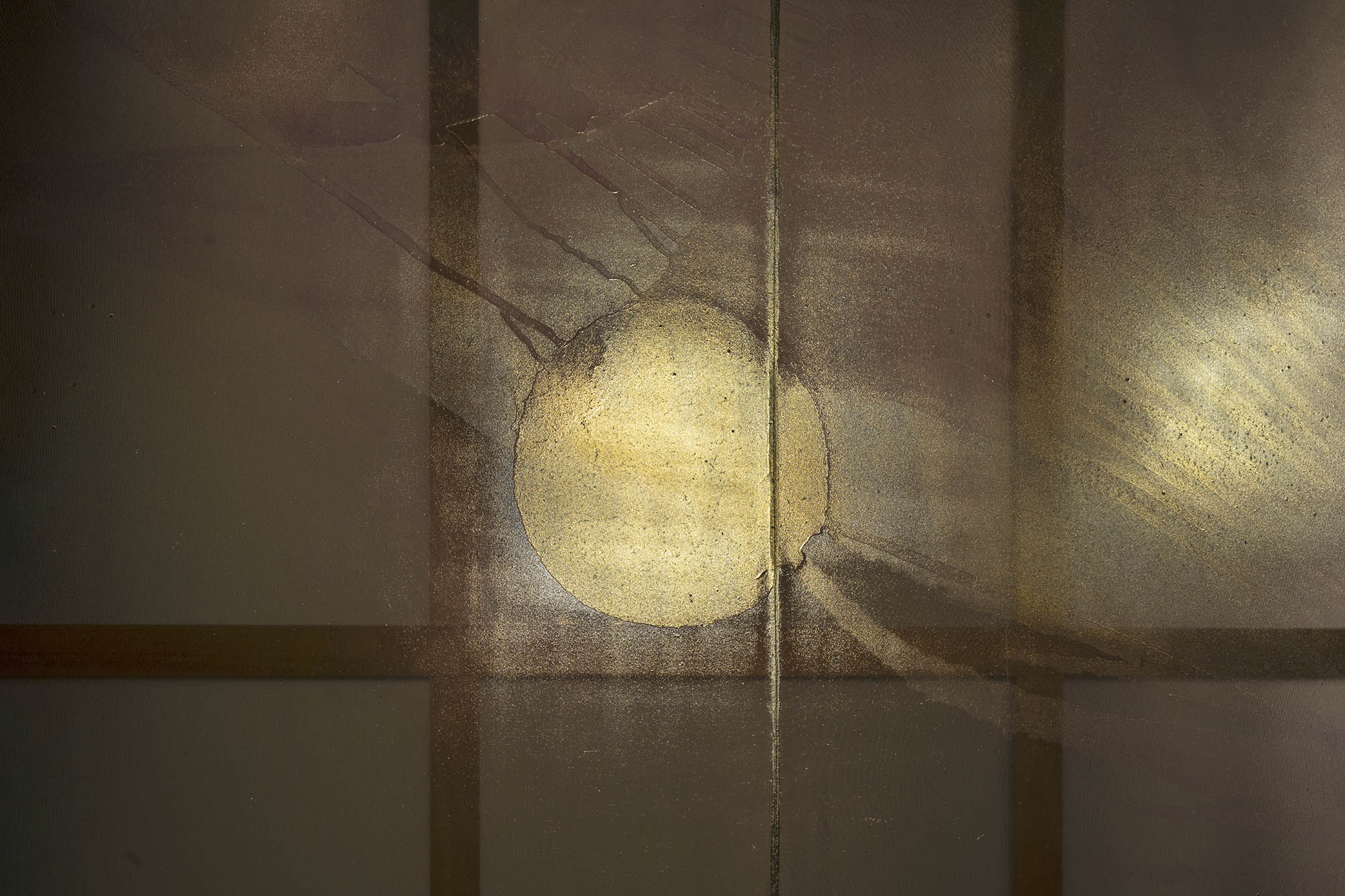 Entre temps il a fallu traverser le chiaroscuro de Sigmar Polke et son cycle grandiose « Axial Age », chapelle de l’opacité et de la transparence et autre hommage à Goya ou les vibrations intérieures de Laura Lamiel qui investit les 24 vitrines de la Bourse d’une chorégraphie évanescente avec pour titre emprunté à Beckett « ça fait un bruit d’ailes, de feuille, de sable ».