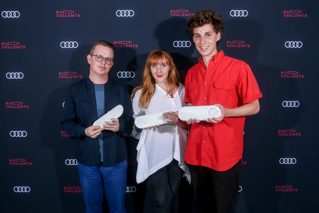 OtherSide Les Lauréats Audi Talents 2018 Marie-Elisabeth De La Fresnaye13 juin 2018 Partager Partager Audi talents. Gregory Chatonsky, Marielle C. Habal, Leonard Martin © Matthew Olivier Lundi 4 juin, lors de la troisième édition de la Soirée Audi talents, au Tokyo Art Club (Palais de Tokyo, Paris), les noms des trois lauréats de la 12ème édition des Audi talents ont été annoncés, en présence des membres du jury : – Marielle Chabal pour son projet Al Qamar – Grégory Chatonsky pour son projet Terre Seconde – Léonard Martin pour son projet Picrochole Créé en 2007, le programme Audi talents accompagne, chaque année, des artistes émergents, reconnus pour leur aptitude à innover, en leur donnant les moyens de réaliser leur projet. Depuis plus de dix ans, Audi talents a ainsi permis à plus de quarante projets de voir le jour. Le programme accompagne la création contemporaine dans toute sa diversité. Regroupées sous la bannière – Arts visuels – les pratiques artistiques suivantes sont ainsi représentées : arts plastiques, design et arts appliqués, musique et image, arts numériques, productions audiovisuelles. La dotation par projet est de 70 000 euros, complétée par un accompagnement humain et artistique. Une équipe dédiée, tout au long de l’année, soutient, depuis la conception jusqu’à l’exposition en passant par la production et la médiatisation, les lauréats des projets élus. Une exposition des projets aura lieu en deux temps en 2019 : à Paris au Palais de Tokyo à partir du 22 juin puis en région, à la Friche Belle de Mai de Marseille à partir du 1er septembre. En savoir plus sur les lauréats et leurs projets : http://www.auditalents.fr/ Marque-page0