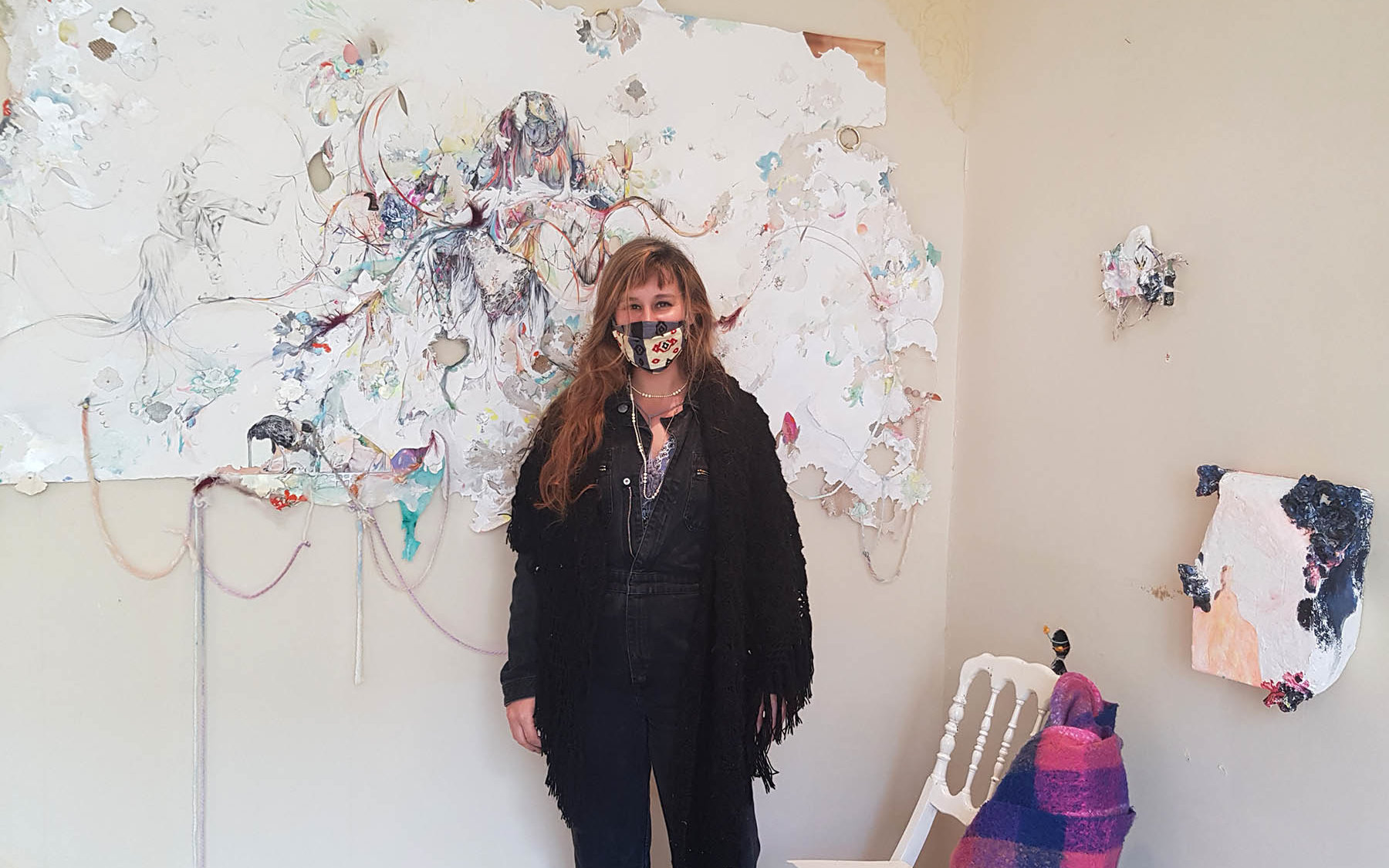 Partager Partager Nouveau né de la planète Drawing Now, Drawing Lab, Drawing Hôtel.. la Drawing Factory, fondée par Christine Phal et Carine Tissot en partenariat avec le CNAP et le promoteur immobilier Soferim. Une trentaine d’artiste retenus parmi 400 candidatures suite appel à projets et sélection de jury, ont investi un ancien hôtel haussmannien, 11 avenue Mac Mahon Paris 17ème. vues de l’atelier de Vanina Langer, Drawing Factory avril 2021 © Marie de la Fresnaye vues de l’atelier de Vanina Langer, Drawing Factory avril 2021 © Marie de la Fresnaye Une occupation temporaire (jusqu’au 19 septembre) autour d’une bourse de création de 500€ (CNAP), permet aux artistes de disposer d’un atelier brut et aménageable selon leurs envies. Sur les 1500m² au total, un foyer au rez-de-chaussée est réservé à des rencontres, conférences, workshops, l’idée étant de favoriser la visibilité de leur travail pendant cette période d’incubation. Parmi les artistes rencontrés sur place, s’ils n’ont pas tous encore personnalisé leur espace, ils revendiquent une pratique militante et engagée du dessin, medium pensé dans une approche d’art totale pour beaucoup d’entre eux. Un bel exemple concerne Vanina Langer, l’un de mes coups de coeur ! Artiste habituée à investir des friches, elle a apprécié l’atmosphère particulière qui se dégage du lieu. Elle prépare une installation évolutive (chambre et salle de bain) autour de cosmogonies qu’elle conçoit à partir de toutes sortes d’objets collectés, matériaux récupérés, tissus, miroirs, dessins… reliés par des textes, lignes, des lianes, des fantômes d’histoires. Comme les éclats de notre monde où plus rien ne tient. Vanina Langer travaille de plus à sa prochaine exposition qui a ouvert au Garage Amelot autour de l’engendrement du vivant et réinterprétation des Ménines de Vélasquez, “l’origine de l’éclatement parfait”. Autres artistes et interviews : Pooya ABBASIAN | Ethan ASSOULINE | Fabrice CAZENAVE | Camille CHASTANG – interview | Dalila DALLEAS BOUZAR | Odonchimeg DAVAADORJ | Chloé DUGIT-GROS – interview | Camille FISCHER – interview | Gabriel FOLLI | Éléonore GEISSLER | Juliette GREEN | Marie HAVEL | Gabrielle KOURDADZÉ | Boris KURDI | Gaspard LAURENT | Benjamin LAURENT-AMAN | Shuo HAO | Matthias LEHMANN | Thomas LÉON | Claire MALRIEUX | Pauline MARTINET & Zoé TEXEREAU | Audrey MATT-AUBERT | Chloé POIZAT | Clovis RÉTIF | Araks SAHAKYAN | Thibault SCEMAMA DE GIALLULY | Quentin SPOHN | Louise VENDEL | Maxime VERDIER Vanina Langer, oeuvre en cours de conception Drawing Factory © Marie de la Fresnaye INFOS PRATIQUES : Drawing Factory 11 avenue Mac-Mahon 75017 Paris Visites professionnelles sur rendez-vous Drawing Factory – DRAWING LAB PARIS A noter que la prochaine édition de Drawing Now Art Fair se tiendra sous un format alternatif au 42 rue du Faubourg Saint-Antoine autour de 35 galeries du 10 au 13 juin. Actualités de l’artiste : Exposition FAIRE L’AUTRUCHE Je ne sais pas si c’est la poule ou l’oeuf et Marguerite non plus Du 15 – 26 mai 2021 Garage Amelot, Paris Exposition-évènement produite par le collectif QUELQUE-CHOSE DE NEUF http://vaninalanger.blogspot.com/ Marque-page0