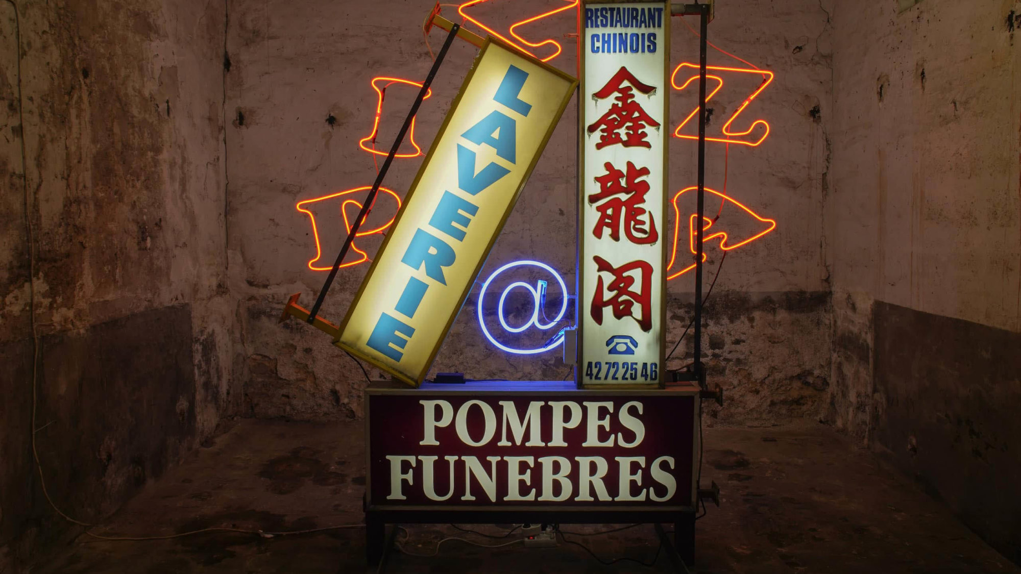 Partager Partager A la suite d’un appel à projets lancé en novembre 2020 auprès des diplômés des cinq dernières années (2015-2020) de l’Ecole des Beaux-Arts de Paris, Prosper Legault a été retenu parmi les 14 artistes sélectionnés. Comme le souligne Marie-Ann Yemsi commissaire de ce second volet de Transport Commun, ces artistes ont décidé pour beaucoup de suivre un engagement similaire au plus près de leurs convictions et de l’art. C’est le cas de Prosper, fondateur du collectif La Volonté 93. Il nous décrypte l’œuvre qui est entrée dans la Collection Société Générale « Je te fais marché (de l’art contemporain) », et se dit étonné et ravi d’être exposé aux côtés d’artistes qui l’ont beaucoup inspiré comme Daniel Spoerri qu’il a découvert jeune au Centre Pompidou. S’il découpe des fragments urbains auxquels il redonne une nouvelle énergie, Prosper capte en parallèle le rythme des mots qu’il recompose ensuite dans des vidéos/chansons. Il est revenu sur son parcours et sa vocation d’artiste, apparue lorsqu’il préparait un bac professionnel en chaudronnerie. Un travail du métal qui ne l’a pas quitté. Prosper Legault a répondu à mes questions. Genèse de cette exposition J’ai répondu à l’appel à projet lancé aux Beaux-Arts de Paris en envoyant une sélection de plusieurs travaux. Le comité de sélection a retenu l’œuvre intitulée Je te fais marché (de l’art contemporain). Composée d’une enseigne de boulangerie en forme d’épis de blé légèrement calcinée, elle est traversée par les lettres du mot « Marché » découpées comme les corbeaux des lettres anonymes ou dans l’esthétique de groupes punk. Une lettre provient d’une pharmacie, une autre d’une brasserie ou encore une autre d’un vendeur de vin. Ce mot m’évoque : le marché aux puces, le marché de l’art contemporain, la marche en solitaire. Il a de multiples significations même si son sens premier est de marcher dans la vie. Cette œuvre est constituée de nombreux fragments que j’ai glané, décidé de garder un moment pour les recomposer ensuite. Je les ai twisté pour les rendre plus agréables et leur donner une autre énergie que celle de départ. Prosper Legault, Je te fais marcher , néons et technique mixte © DR Quelle impression avez-vous de l’accrochage de Marie-Ann Yemsi ? Marie-Ann a su remarquablement agencer les œuvres les unes avec les autres. Je suis stupéfait et ravi de me trouver aux côtés de Daniel Spoerri par exemple qui est l’un des premiers artistes à m’avoir profondément marqué lors de mes visites jeune au Centre Pompidou. Me trouver dans la même exposition que lui est un bonheur. Le lieu n’est pas un white cube classique mais le côté décalé est intéressant au final. Comment réagissez-vous à voir exposée prochainement l’œuvre dans le contexte d’une salle des marchés ? Je n’avais pas forcément imaginé exposer un jour dans le siège d’une grande banque et je suis content de rester fidèle à moi-même, y compris dans un tel contexte. Imaginer cet épi de blé brûlé devant la salle des marchés, c’est un peu comme dans Le Loup de Wall Street, le film avec Di Caprio, cela me plait assez ! © Prosper Legault Retour sur l’œuvre « Bienvenue dans la Vi(ll)e » exposée à Saint-Eustache dans le cadre de Rubis Mécénat x Beaux-Arts de Paris C’était un exercice d’équilibriste compte-tenu du cadre d’exposition. Je suis resté libre de ma proposition qui devait toutefois répondre à la thématique de la nativité au cœur de ce lieu de culte. Pour ne pas perdre cette ambivalence entre un esprit un peu frondeur et la solennité de l’église, j’ai choisi de placer ce grand personnage de Dragon Ball au beau milieu de la crèche. J’ai fait un tag au-dessus de ce grand personnage en hommage à mon ami Paul SAEIO, l’un des plus tagueurs de Paris décédé en 2017. J’avais envie de le citer ici. J’ai transposé les Rois Mages en vendeurs des rues : le premier de marrons chauds, le second de fruits et légumes à l’image de ceux que l’on trouve à la sortie des métros, et le dernier était représenté par une tente éclairée de l’intérieur. Au sommet de cette scène j’ai souhaité évoquer les tourments que traverse le monde avec le titre « Bienvenue dans la Vi(ll)e » créant ainsi une analogie entre la vie et la ville. Au-delà de la forme de l’installation et son déploiement dans l’église, qui venait en quelque sorte souligner le très bel orgue, je ne tenais pas à m’imposer dans l’église mais en souligner les lignes de force. Un vrai défi avec pour la première fois une équipe et des moyens de production pour l’accomplir. Il était déjà question du verbe « marcher » dans cette installation, à travers l’étoile du Berger confectionnée avec une enseigne de cordonnier. Sous forme de botte, elle annonçait le message suivant « chaussure rénovée, confort assuré », le tout entouré par des demis « M » de McDonald pour composer les branches de l’étoile. L’installation à l’église Saint-Eustache et l’œuvre acquise par la Collection Société Générale retranscrivent la même idée : se méfier de l’argent, du marché et de la spéculation qui fait beaucoup de mal au monde et aux hommes bien que nous ayons besoin de marché mais pas du marché. Comment définissez-vous votre pratique ? Ma pratique est de l’ordre de l’assemblage. Avant de devenir artiste et de faire des expositions et interventions dans différents lieux, j’étais menuisier employé pendant plusieurs années dans une entreprise à Montreuil. En arrivant aux Beaux-Arts, j’ai tout de suite été à mon aise, capable de visser, souder, percer, découper… tous types de matériaux. En parallèle j’ai une grande pratique d’écriture. J’écris des chansons depuis toujours. J’aime faire l’analogie entre la manière dont j’