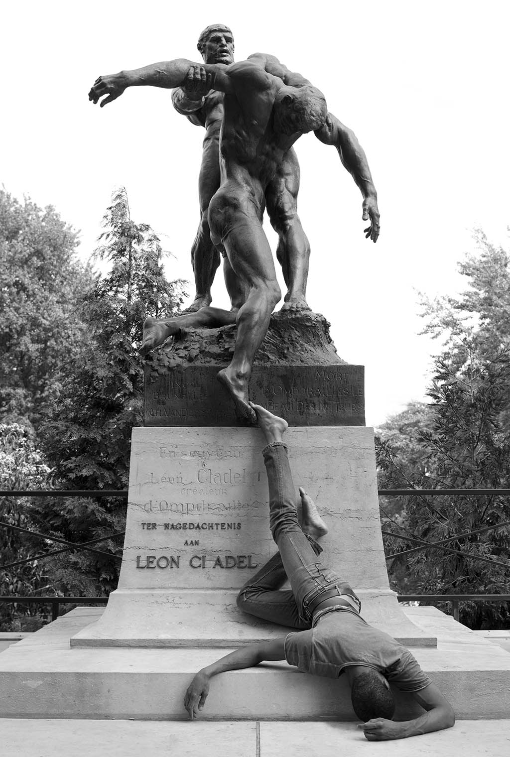 Partager Partager A partir d’une pluralité de sources et de médiums, Jimmy Robert questionne la notion du genre et du rapport à la norme, la relation entre les images en mouvement, les sculptures et la chorégraphie, la vulnérabilité des corps et les constructions linguistiques socialement acceptées. Né en Guadeloupe et ayant grandi en banlieue parisienne, Jimmy Robert quitte la France pour aller étudier au Goldsmith College de Londres, puis rejoint la prestigieuse Rijksakademie d’Amsterdam, part vivre à Bruxelles, s’installe à Bucarest et plus récemment choisit Berlin où il enseigne. Des éléments biographiques qui éclairent sa vocation d’artiste et sa pratique à la fois inscrite dans une approche minimale et conceptuelle mais également tactile et sensuelle autour de la place du corps ou son absence. Marie Cozette, directrice du Crac Occitanie, qui l’avait exposé à la Synagogue de Delme en 2016, lui offre une exposition qui retrace 20 ans de son parcours en partenariat avec deux autres institutions internationales : le Nottingham Contemporary (GB) où a eu lieu la première étape du projet et le Museion de Bolzano (It) où s’est écrit le 2ème chapitre. Une itinérance très exceptionnelle sur laquelle Jimmy Robert revient. Il a répondu à mes questions. Jimmy Robert, Sans titre (Ompdrailles), 2013. Tirage jet d’encre d’archives. Courtesy de l’artiste, Stitger Van Doesburg, Amsterdam et Tanya Leighton, Berlin Retour sur la genèse du projet Le Nottingham Contemporary (GB) m’a tout d’abord contacté autour d’un projet qui regrouperait mes travaux, sans forcément envisager une rétrospective même si pour finir nous avons réalisé que le projet concernait un corpus de plus de 20 ans. Je me suis alors rapproché des commissaires : Bart van der Heide (directeur du Museion de Bolzano), rencontré quand je vivais et étudiais à Amsterdam et Marie Cozette avec qui j’avais exposé à la Synagogue de Delme. Une fois qu’ils ont accepté, nous avons dû très vite tout mettre en place et nous adapter au contexte général de la pandémie avec des changements de dates et risques d’annulation. Malgré ce stress, je suis très content que l’exposition ait pu venir à Sète. Vue de l’exposition «Appui, tendu, renversé », Jimmy Robert, Crac Occitanie Sète 2021. « Untitled (Plié II) » 2020. Courtesy de l’artiste et de la galerie Tanya Leighton, Berlin. Photographe : Aurélien Mole. Le choix du titre : Appui, tendu, renversé Ce terme APTR renvoie à l’univers de la gymnastique que je pratiquais quand j’étais à l’école. Je m’interrogeais sur sa signification et comment une série de mots peut correspondre à un mouvement comme une sorte d’instruction. Cette relation au langage m’intéressait dans ce qu’il peut informer et qualifier l’essence d’un mouvement. L’organisation du parcours Je parlerais d’une suite de mises en scènes avec beaucoup de théâtralité dans la présentation. Il y a des mises en scènes d’images les unes par rapport aux autres, des références à des performances, présentes ou non, suggérées par des espaces vides et latents. Des relations au jeu, à l’appropriation. Selon le lieu d’exposition des différences peuvent-elles se traduire ? Absolument, par exemple ici nous avons des œuvres et des textes non présents à Nottingham. L’œuvre qui s’intitule Vanishing Point n’était pas exposée à Museion alors qu’elle bénéficie d’une salle entière au Crac. Chaque espace d’exposition est envisagé comme une scène potentielle. Vue de l’exposition «Appui, tendu, renversé », Jimmy Robert, Crac Occitanie Sète 2021. « Untitled (Plié II) » 2020. Courtesy de l’artiste et de la galerie Tanya Leighton, Berlin. Photographe : Aurélien Mole. Qu’est-ce qui se joue avec Vanishing Point ? Cette installation vidéo est l’aboutissement de plusieurs aspects. Elle part d’une performance d’une drag queen rencontrée dans un cabaret à Rio, intitulée « Bate Cabello » littéralement « secouer les cheveux ». Un phénomène assez fascinant découvert quand j’étais au Brésil axé sur la vitesse et la dramaturgie des cheveux qui bougent. J’ai voulu la déplacer pour la confronter à un bâtiment emblématique, la tour Capanema de l’architecte urbaniste Lucio Costa, pionnier avec Oscar Niemeyer du modernisme brésilien. Comment placer un corps qui résiste à cette architecture très rigide. Une voix off reprend un poème d’Ana Cristina Cesar, linguiste active pendant les années de dictature, qui parle d’élégie et de résistance. Je voulais rejoindre ces éléments pour créer quelque chose de nouveau par rapport à mon expérience brésilienne. Il y a une sorte de dichotomie dans votre travail entre le corps et le langage Ces deux éléments sont toujours en tension. Est-ce que le corps suit les instructions du langage ou est-ce le contraire ? Comment le langage nous construit mais reste actif et malléable donc potentiellement déconstruit. Il s’agit d’un perpétuel jeu entre les deux. Aviez-vous l’idée de montrer des performances pendant le temps de l’exposition ? Non et il était très clair pour moi d’aborder ce qui se passe quand mon corps n’est pas activé et que reste-t-il à voir quand mon corps a disparu. Comment j’envisage la mise en scène de cette absence à la fois dans les institutions ou les relations au spectateur qui ne peut pas toujours voir les performances. Un certain nombre de problématiques qui renvoient aux notions d’identité et de représentation, de visible et d’invisible. Vue de l’exposition «Appui, tendu, renversé », Jimmy Robert, Crac Occitanie Sète 2021. « Untitled (Plié II) » 2020. Courtesy de l’artiste et de la galerie Tanya Leighton, Berlin. Photographe : Aurélien Mole. Les images qui tombent ou l’échec de la représentation Je m’interroge sur le statut de l’image par rapport à un corp