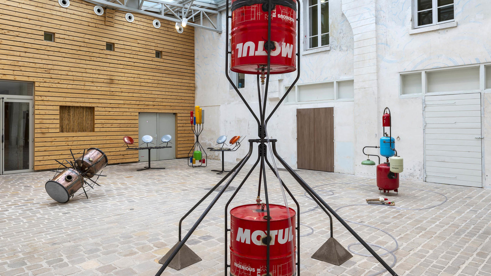 Partager Partager Lauréat de la 13ème Biennale de la jeune création de la Graineterie je rencontre* François Dufeil à l’occasion de sa première exposition personnelle dans le centre d’art francilien, intitulée Chlaaak Tuuung Fiiiiiit. Formé au sein des Compagnons du Devoir et diplômé des Beaux-arts d’Angers et des Arts Décoratifs de Paris, l’artiste également l’un des fondateurs du collectif Le Wonder est animé d’une véritable écologie de l’art. Vue de l’exposition François Dufeil, Chlaaak Tuuung Fiiiiiit La Graineterie, centre d’art photo Marc Domage Vue de l’exposition François Dufeil, Chlaaak Tuuung Fiiiiiit La Graineterie, centre d’art photo Marc Domage Inventeur et génial touche-à-tout, il met en place des machines expérimentales à partir de matériaux de rebus pour redonner sa place au corps et au geste ouvrier. Ces prototypes émancipés sont activés par des intervenants extérieurs dans des champs aussi variés que la cuisine, la céramique ou le son. Ainsi bonbonnes de gaz et d’extincteur, bouteilles de plongée, tuyaux, deviennent une station solaire pour un légume, une poterie centripède, des cloches ou carillons, une sérigraphie portative .. Des « sculptures-outils » dont il nous décrypte les enjeux en terme d’énergie, de low-tech et de décroissance. La cocréation et le partage sont des valeurs essentielles à sa pratique. François Dufeil interviendra prochainement (concert) au Frac Pays de la Loire, dans le cadre du finissage de l’exposition Etoiles distantes, au Frac Normandie dans le cadre de Matérialité, exposition de la Collection et sera exposé à l’occasion de GONTIERAMA 2022 à la Chapelle du Genêteil (Château-Gontier). Il bénéficiera d’une exposition personnelle dans le prolongement de sa résidence aux ateliers Bonus, collectif et incubateur de dynamiques artistiques coopératives sur l’Ile de Nantes en juillet 2022 (programmation Voyage à Nantes). En écoute Vue de l’exposition François Dufeil, Chlaaak Tuuung Fiiiiiit La Graineterie, centre d’art photo Marc Domage Vue de l’exposition François Dufeil, Chlaaak Tuuung Fiiiiiit La Graineterie, centre d’art photo Marc Domage Vue de l’exposition François Dufeil, Chlaaak Tuuung Fiiiiiit La Graineterie, centre d’art photo Marc Domage *rencontre organisée par l’association Artaïs à laquelle je participe (magazine) INFOS PRATIQUES : François Dufeil Chlaaak Tuuung Fiiiiiit jusqu’au 12 mars 2022 La Graineterie 27 rue Gabriel Péri 78800 Houilles http://lagraineterie.ville-houilles.fr/ Marque-page0