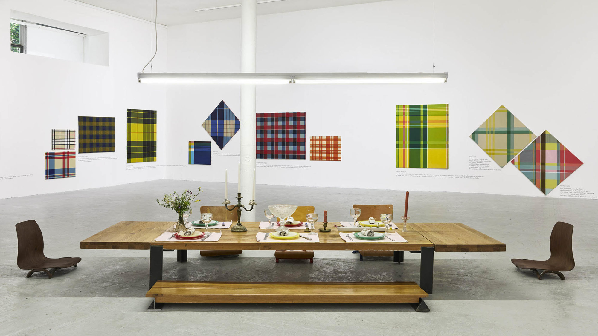 Partager Partager Poursuite de nos pérégrinations dans la cité phocéenne avec Martine Robin, directrice du Château de Servières qui expose actuellement trois artistes femmes : Mayura Torii, Javiera Tejerina-Risso et Delphine Mogarra à partir de plusieurs dispositifs de soutien à la jeune création à Marseille, le tout formant un vaste écosystème ultra dynamique. De plus elle nous dévoile les contours de la 10ème édition de PAREIDOLIE qui fête ses 10 ans en 2023 autour d’une programmation exceptionnelle et plusieurs nouveautés. Parmi les temps forts l’exposition Le temps du dessin sous le commissariat partagé de Jean de Loisy, Chiara Parisi et Gérard Tranquandi au [mac], musée d’art contemporain de Marseille, récemment réouvert. Marine Robin sera également partie prenante du Festival Marcel Longchamp alors que les Ouvertures d’Ateliers d’Artistes continuent à réunir artistes et visiteurs toujours plus nombreux à la période de la rentrée avec la Saison du dessin en toile de fond. Martine Robin a répondu à mes questions. A quand remonte votre découverte de Mayura Torii ? Vue de l’exposition Mayura Torii, « Domestique » Château de Servières photo Jean Christophe Lett Martine Robin. Je la rencontre une première fois alors qu’elle est résidente aux Ateliers de la Ville de Marseille, puis dans une exposition aux Grands Bains Douches de la Plaine. Plus tard, je la retrouve à l’occasion des Ouvertures d’Ateliers d’Artistes autour du projet mené avec Sarah Lallemand qui souhaite soutenir cet artiste qui n’a plus d’atelier. Sarah a l’idée de louer une chambre d’hôtel pour présenter la démarche de Mayura et propose des rencontres publiques afin de réfléchir sur la notion d’échange et de la diffusion du travail de l’artiste au sein des ateliers . Un rendez-vous devenu annuel, qui m’a permis de renforcer mon intérêt pour sa démarche et de décider avec le comité de pilotage du salon, Françoise Aubert et Michèle Sylvander, de l’exposer à l’occasion de PAREIDOLIE en tant qu’artiste invitée. Le principe est de mettre en avant des artistes qui n’ont pas de galerie comme pour Gilles Pourtier par exemple. Une façon de déployer davantage le travail, comme un tremplin. Vue de l’exposition Mayura Torii, « Domestique » Château de Servières photo Jean Christophe Lett Comment décrire le travail de Mayura ? MR. Si nous avons repéré Mayura pour le dessin, c’est parce qu’elle est une artiste surdouée qui maîtrise toutes les techniques. En même temps, sa dextérité n’a rien d’autoritaire et offre le meilleur véhicule pour accompagner sa pensée. C’est ce qui est intéressant d’observer dans l’exposition : la gymnastique intellectuelle qu’elle opère entre un positionnement sur l’actualité et un pas de côté souvent humoristique et satirique. Quand on rentre dans l’exposition elle a tous les atours de l’art contemporain classique, sobre, rigoureux, minimal mais rapidement quand le regard s’aiguise on bascule vers une autre dimension légère et décalée. C’est ce double effet, déstabilisant qui nous captive. L’artiste confronte le quotidien enrichi par sa double culture donnant lieu à des déplacements, des jeux de langage, des malentendus possibles. Des petites choses mises en exergue comme ces deux images placées dans ce qui ressemble au vestibule d’une maison ou d’un appartement. Parcours de visite dans l’exposition avec Mayura et Martine : « Planter les baguettes dans le riz est un geste considéré comme brutal dans notre culture » décrypte l’artiste, de même que « positionner le pain à l’envers est un geste ici mal vécu par les personnes superstitieuses », ajoute Martine. Vue de l’exposition Mayura Torii, « Domestique » Château de Servières photo Jean Christophe Lett La coutume japonaise de laisser ses chaussures à l’entrée pour mettre des pantoufles est évoquée au seuil du parcours. Dans le salon une table est dressée même si un jeu d’échelle incite à s’asseoir pour voir l’exposition à hauteur de vue d’enfant. La ligne d’horizon change et notre regard également. Les rituels du repas, la façon de recevoir, le jeu social sont questionnés à travers cette mise en espace et en tension. Sur un ticket de caisse dessiné elle reproduit une liste de mets fictifs avec leur prix, promesse d’un banquet fictif gargantuesque …. De même avec ce que l’on pourrait prendre pour des tissus encadrés qui sont en réalité des peintures à l’huile faisant référence au courant abstrait géométrique ou au Bahaus. Des motifs cycliques et inspirés du tartan écossais sont déclinés en un vaste ensemble. Les titres et légendes inscrites sous les toiles renvoient au vocabulaire tendance du design, des magazines de décoration, qui trainent sur la coffee table « retro-chic, slow life, tradi-chic ». Qu’est-ce que le goût ? Que disent de nous nos intérieurs ? Qu’est-ce que l’on collectionne ? Qu’est ce qui est représenté en peinture aujourd’hui ? Autant de questions soulevées. L’espace canin en dit long aussi sur la place prise par nos compagnons dans nos vies. Plus loin dans ce qui ressemble à une chambre d’ado, l’artiste agrandit des formes issues de dessins réalisés par son fils âgé de 8 ans. Dans son allusion au modèle patriarcal culturel et domestique, Mayura enveloppe de textile des œuvres iconiques de Marcel Duchamp, évocation directe à la coutume des femmes japonaises qui confectionnent des housses pour tout emballer, y compris l’urinoir dont elle a envoyé un exemplaire au Centre Pompidou lorsque ce dernier avait subi des dégradations. Javiera Tejerina-Risso : genèse et enjeux Vue de l’exposition Javiera Tejerina-Risso, « Lignes de désir » Château de Servières photo Jean Christophe Lett MR. L’exposition s’inscrit dans le cadre du dispositif de résidence Tremplins porté par le ce